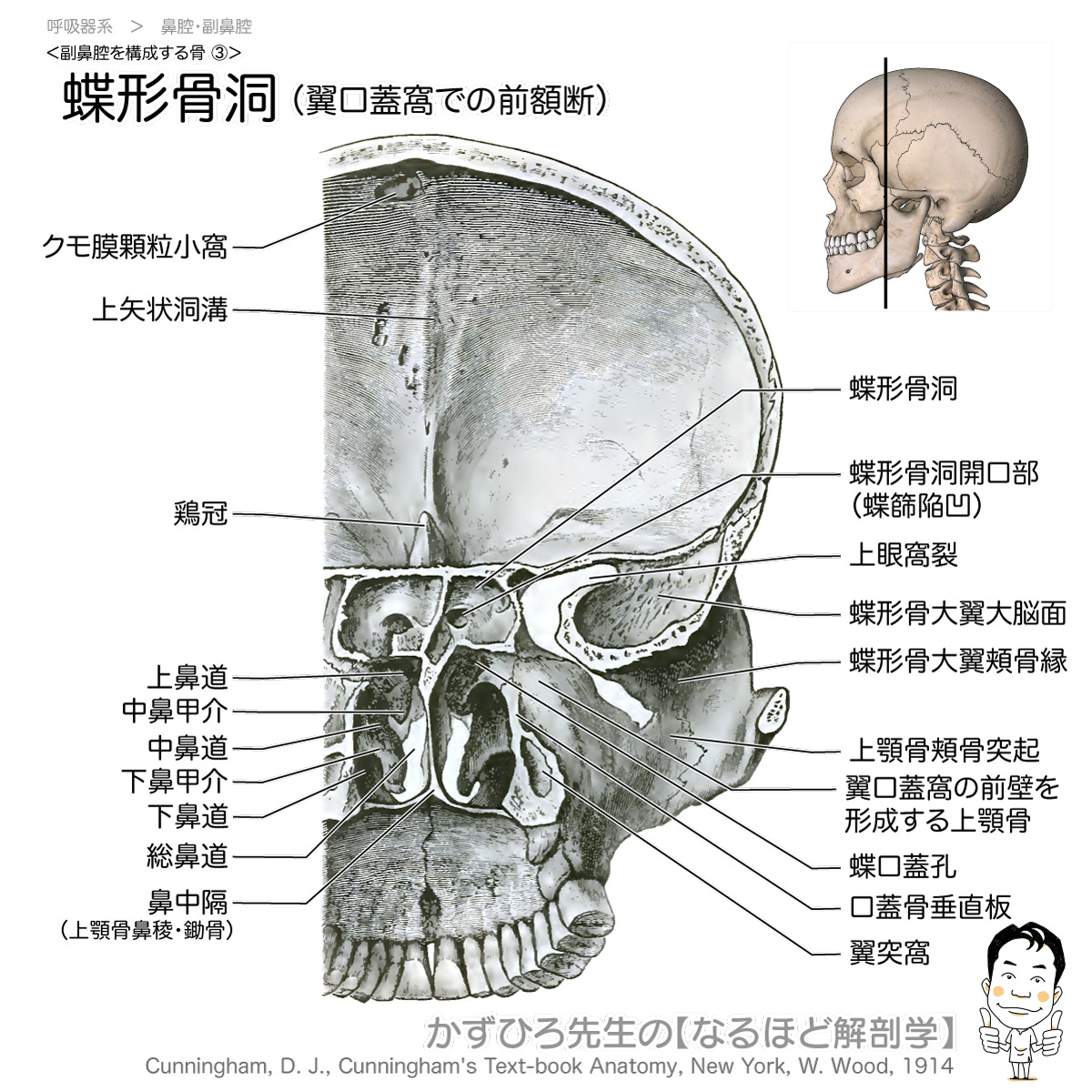 - 蝶形骨洞 :鼻腔の後上方に開口(蝶篩陥凹)