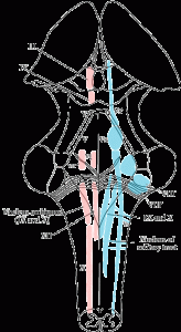 - 毛様体神経節との交通枝(知覚根) communicating branch with ciliary ganglion (sensory root): 毛様体神経節に知覚性成分を送る。