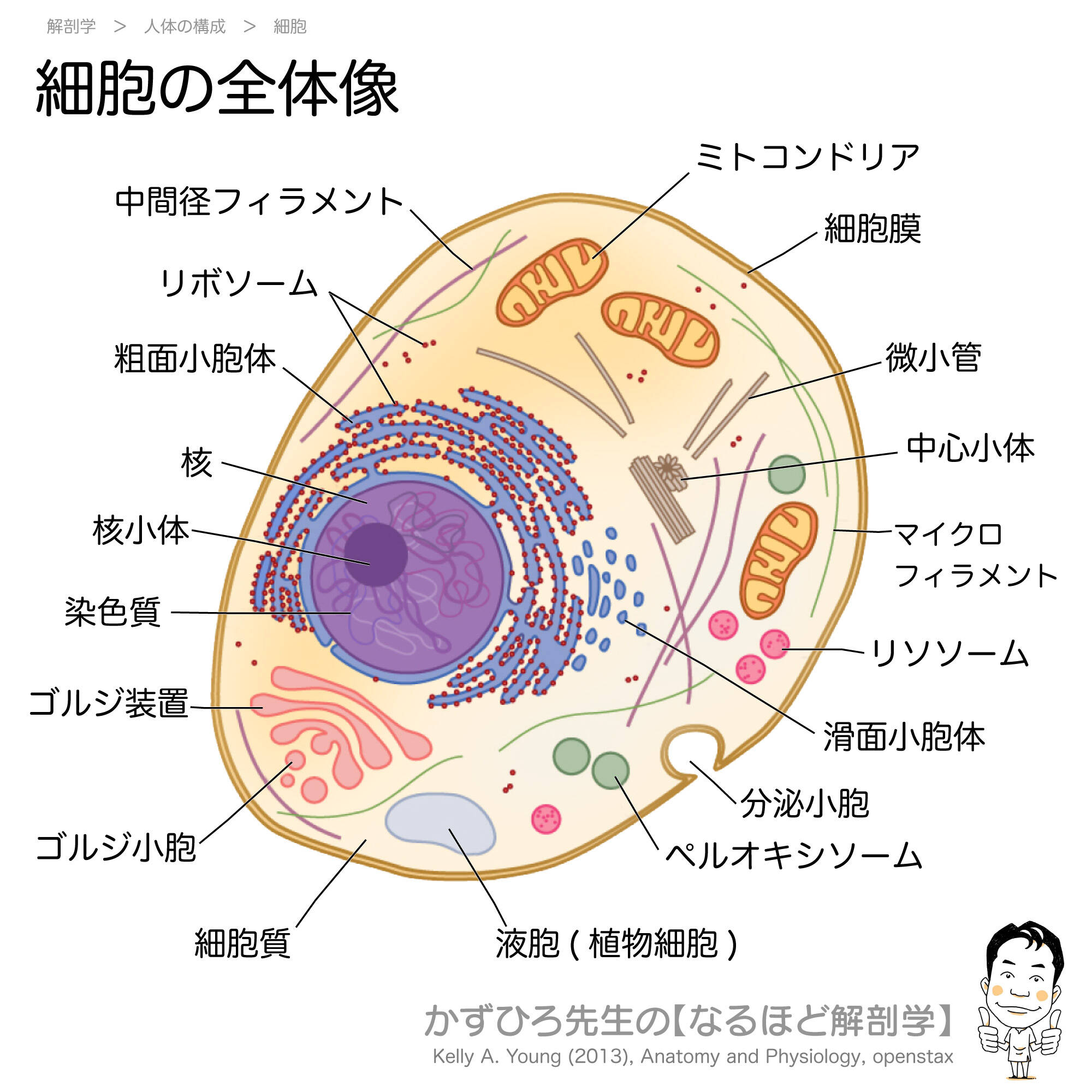 • 細胞質:核以外の部分で、様々な細胞小器官を含む