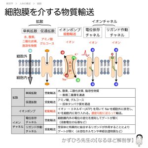「微小管=チューブリン=輸送」「中間径=ケラチン=形態」「アクチン=運動」という対応を確実に覚えましょう。太さは「微小管(25)>中間径(10)>アクチン(7)」です。