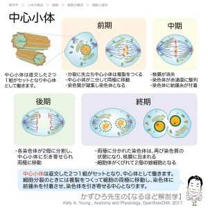 チューブリンからなる微小管が紡錘糸を形成し、染色体を引き寄せます。