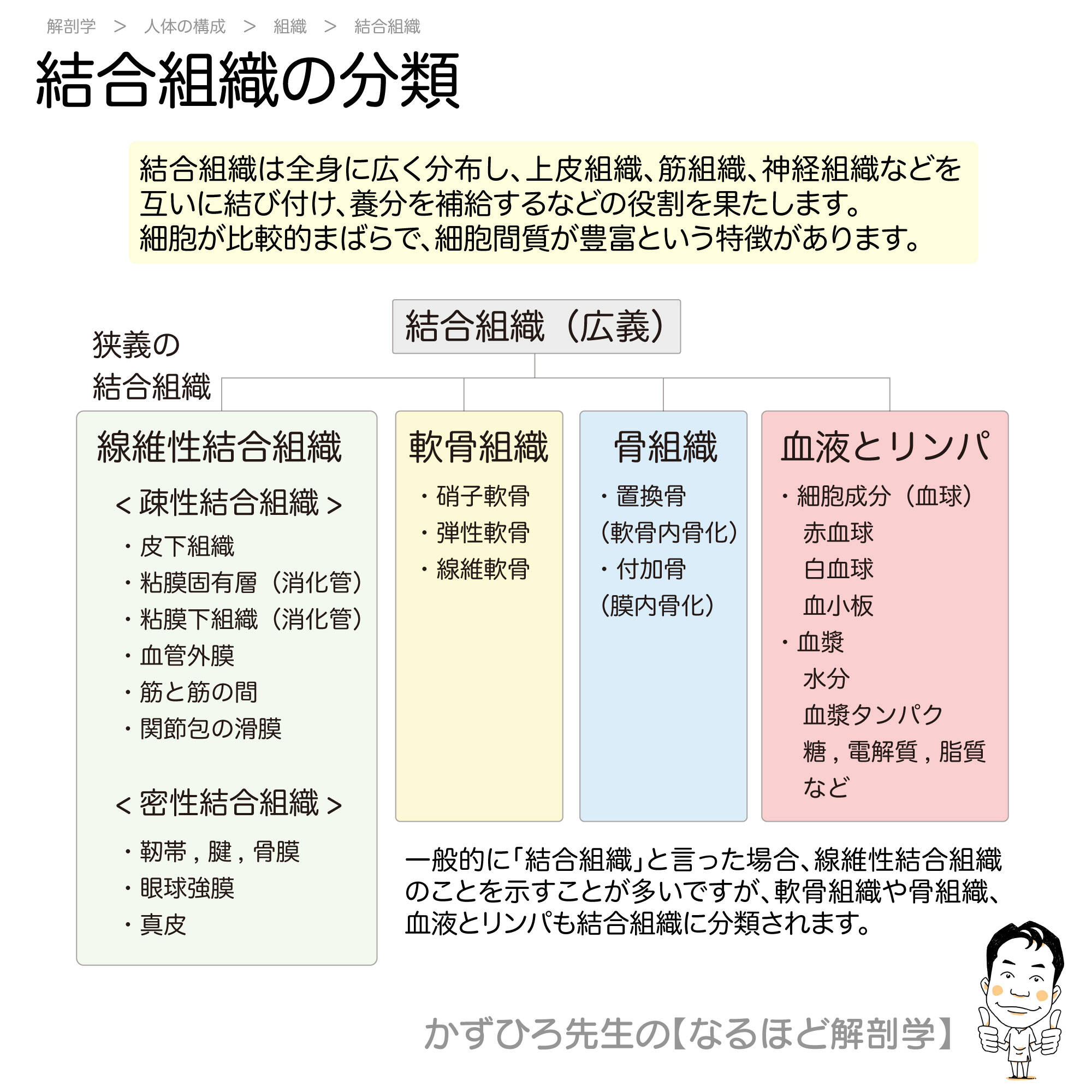 血液も結合組織に含まれることは、国試頻出のポイントです。