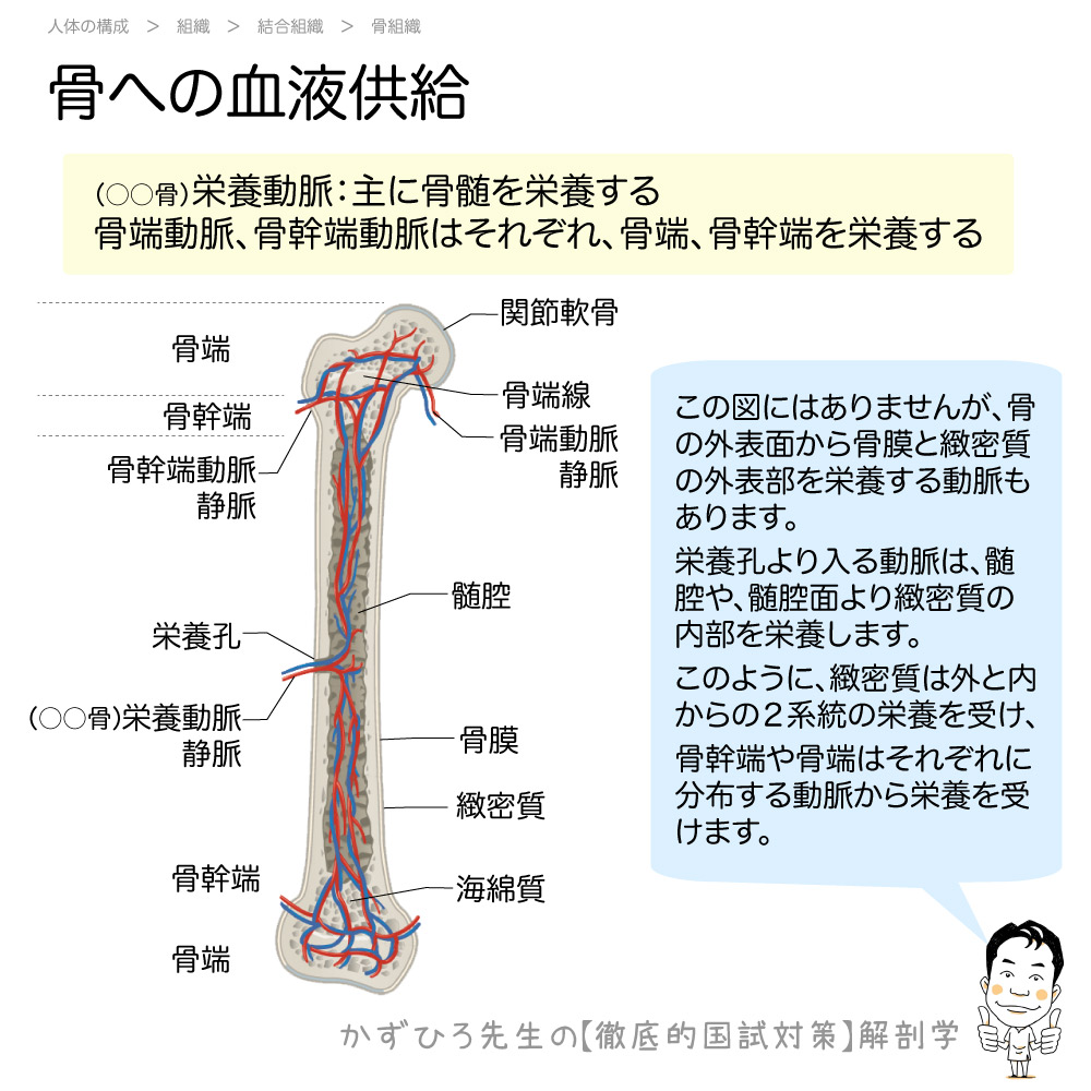 - 栄養動脈:主に骨髄を栄養