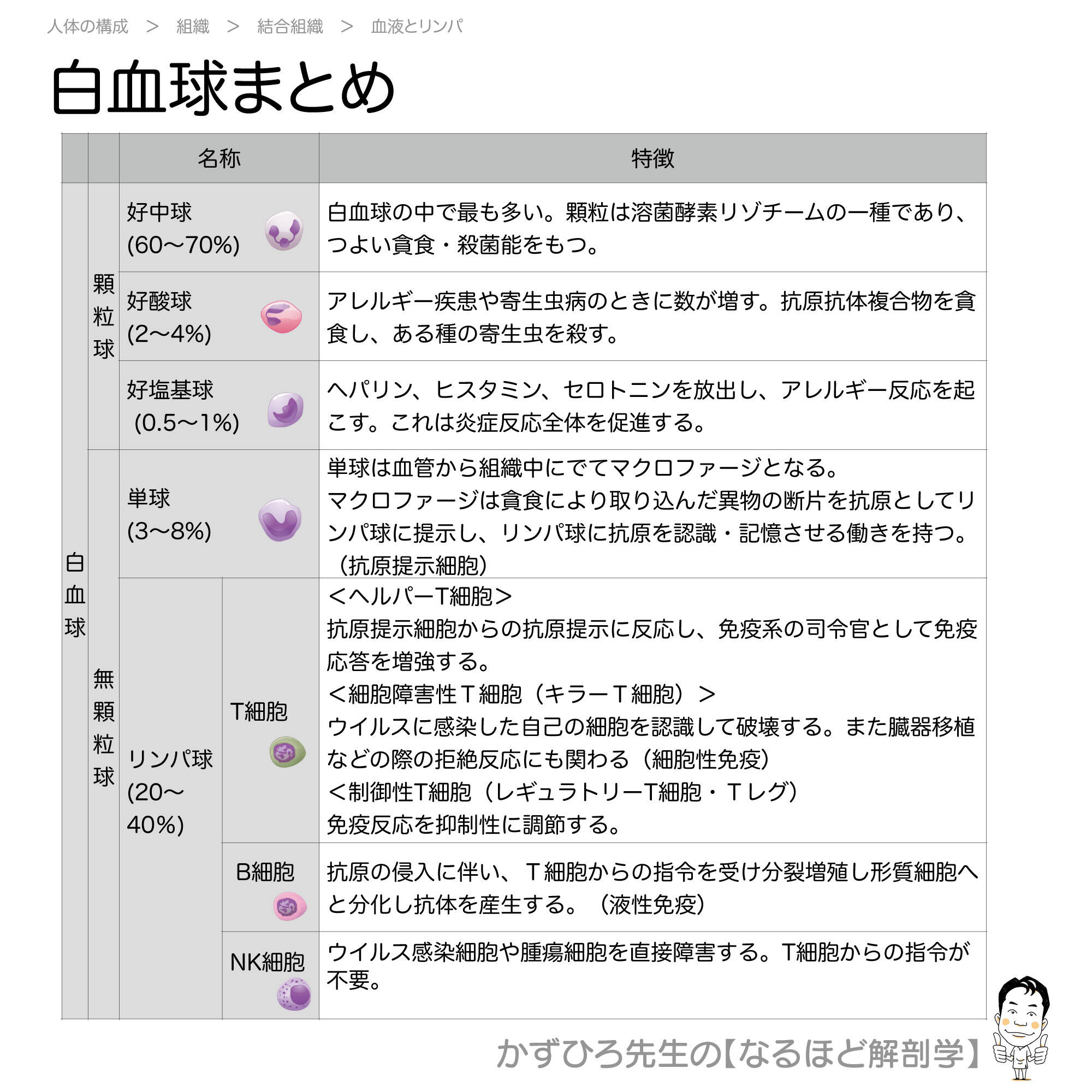| 単球 | 3〜8% | 血管外に出てマクロファージに分化、抗原提示を行う |
