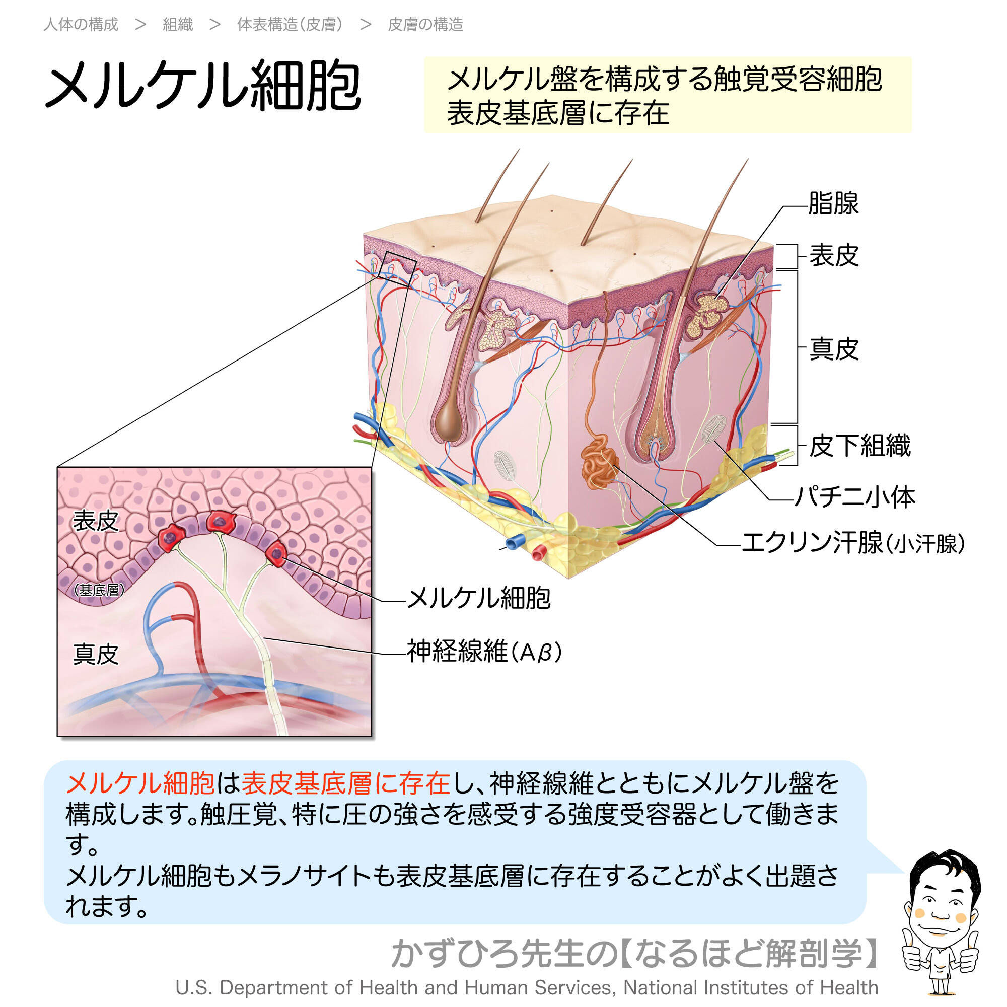 メルケル細胞は触覚受容細胞で、圧の強さを感受する強度受容器として働きます。