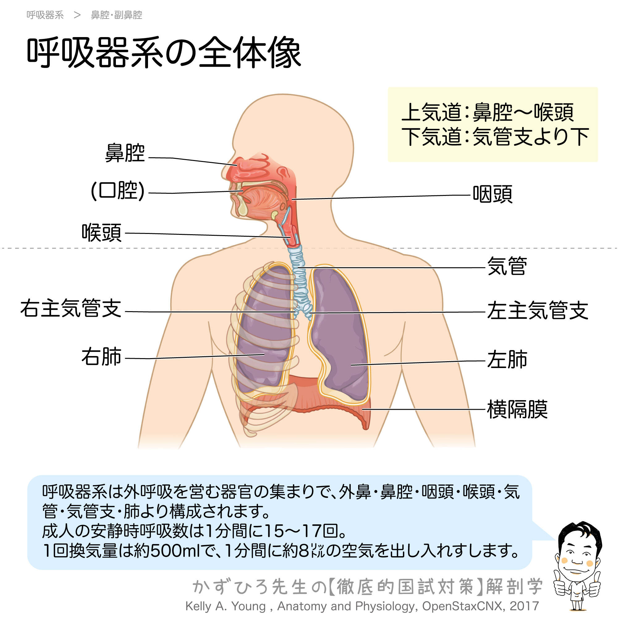 呼吸器系は上気道と下気道に分けられます。