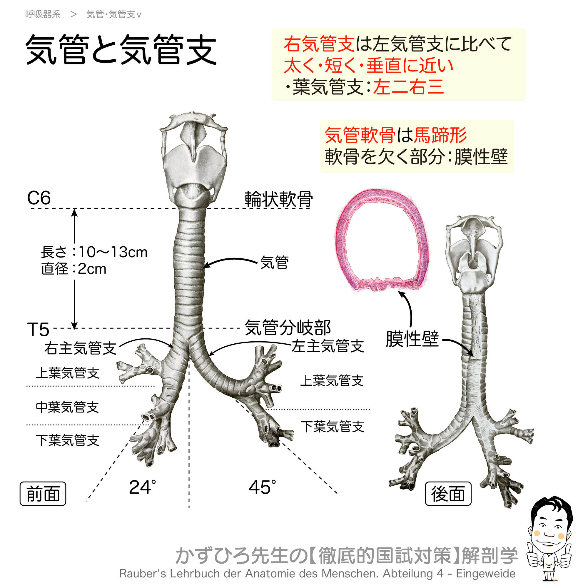 - [ ] 右気管支に異物が入りやすいことを覚えた