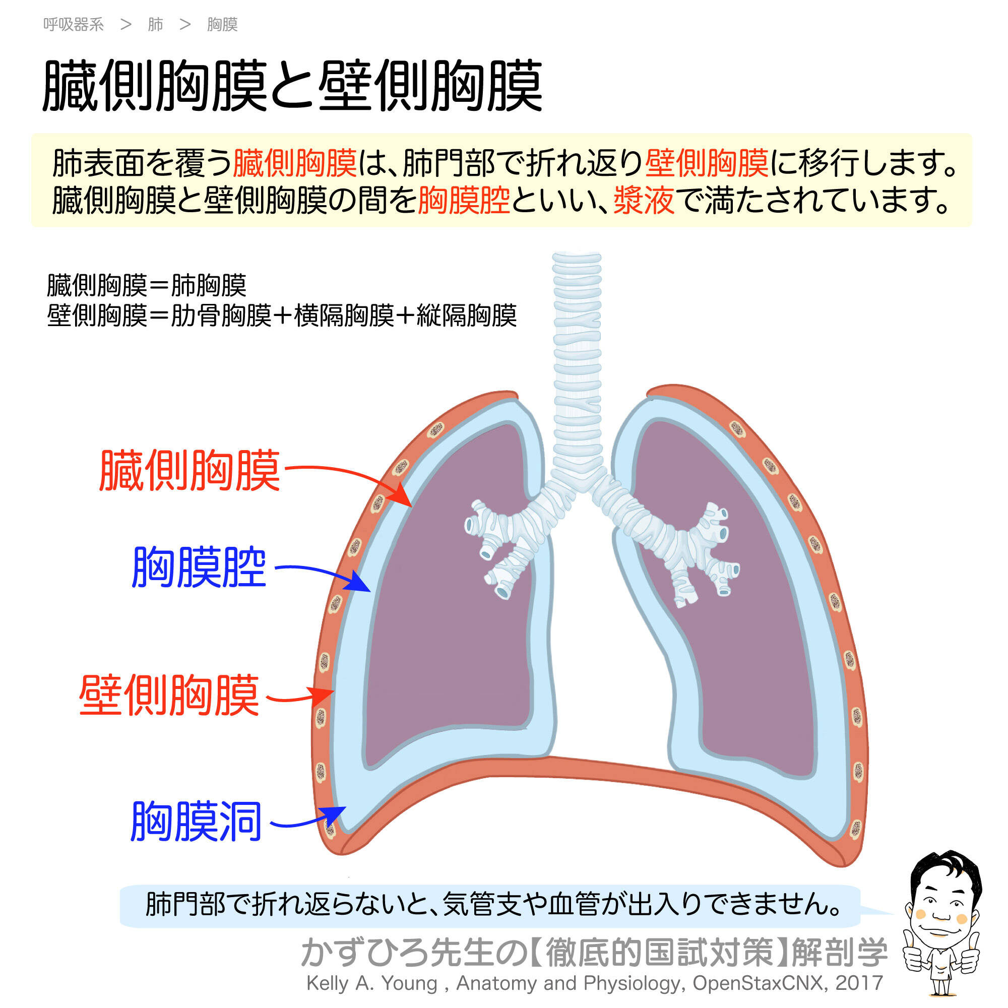 - [ ] 臓側胸膜と壁側胸膜の違いを覚えた