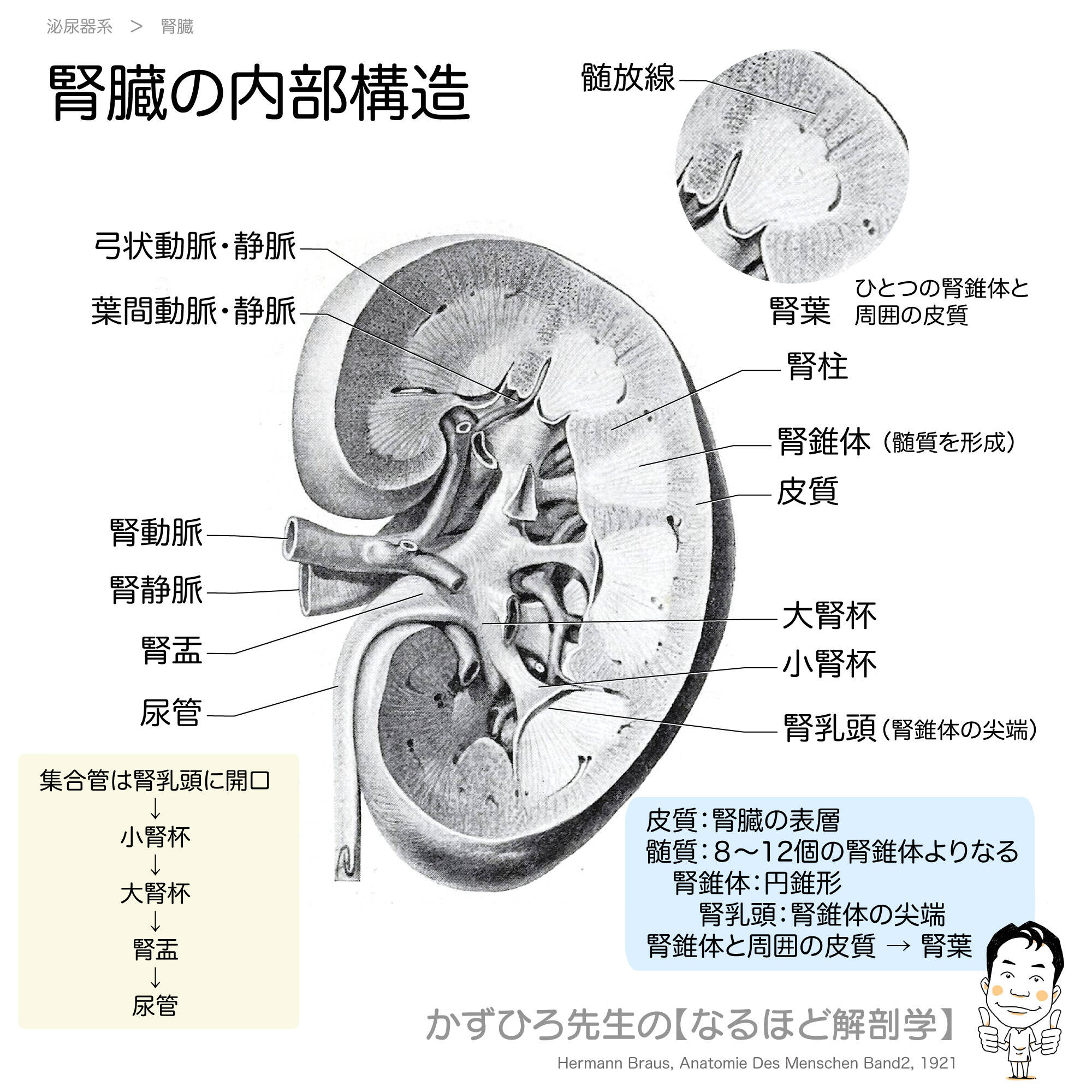 髄質は8〜12個の腎錐体からなり、その尖端を腎乳頭といいます。