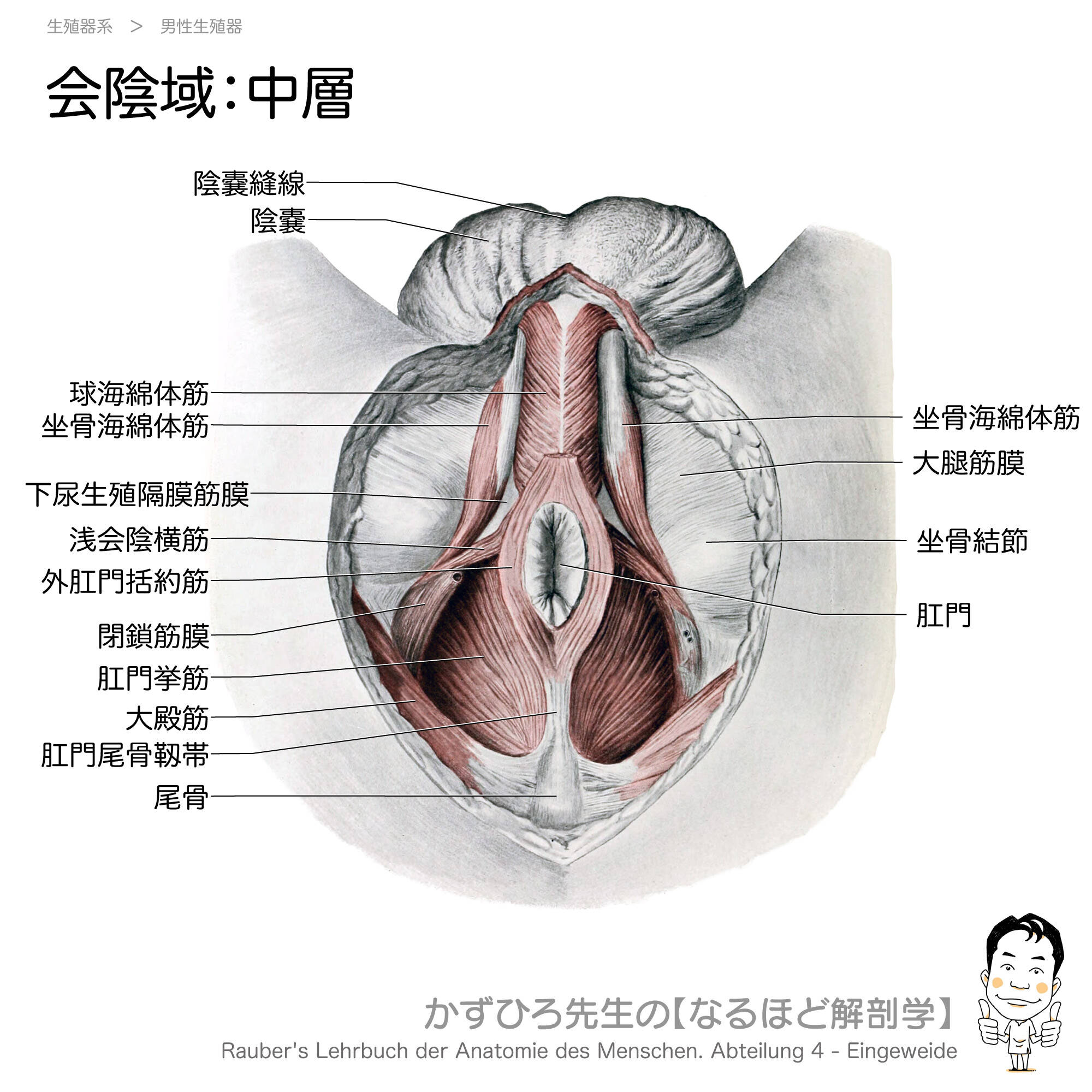 会陰域の中層には浅会陰隙に存在する筋群が含まれます。これらの筋は勃起や射精に関与する重要な構造です。この記事では、男性会陰域の中層について詳しく解説します。