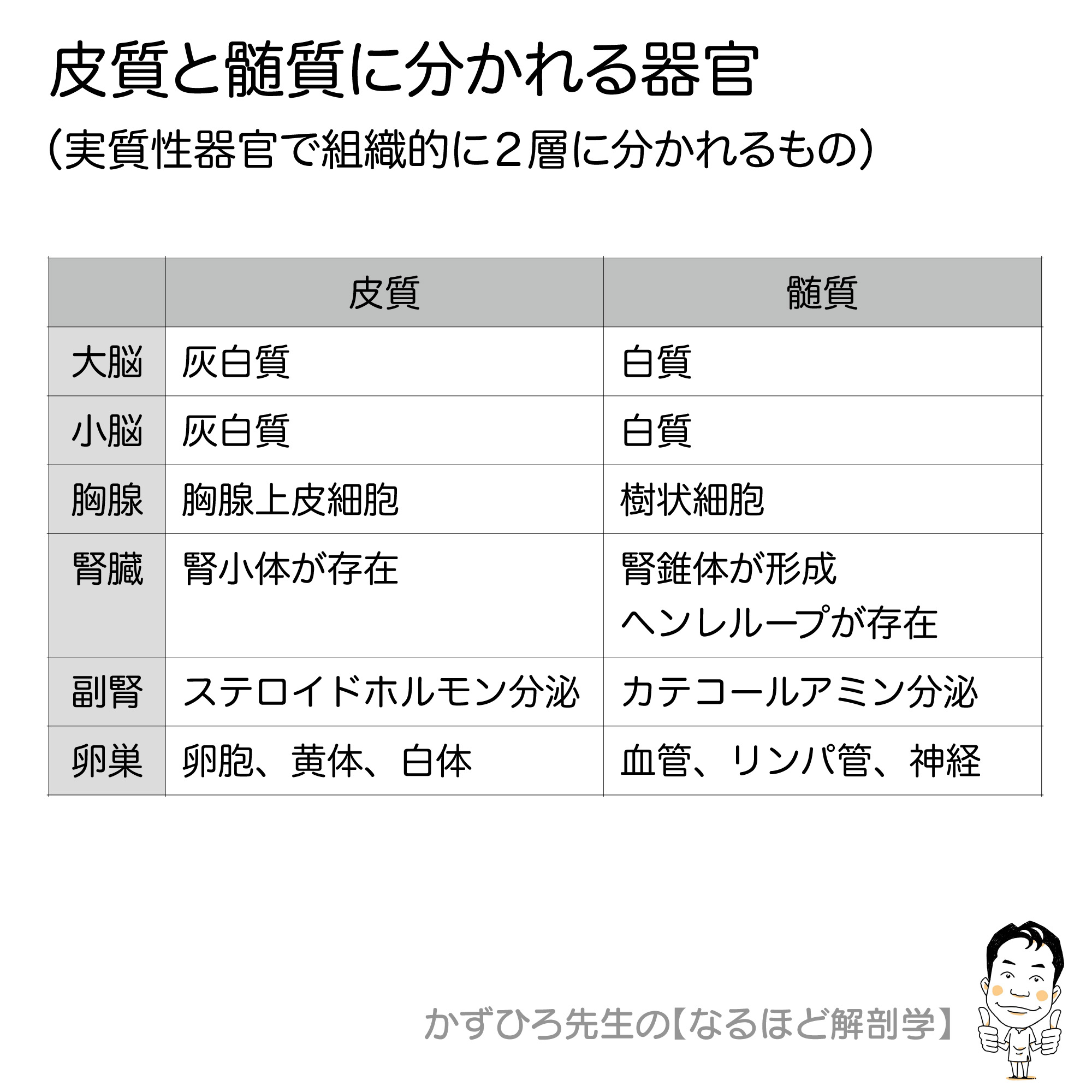 | 器官 | 皮質 | 髄質 |
