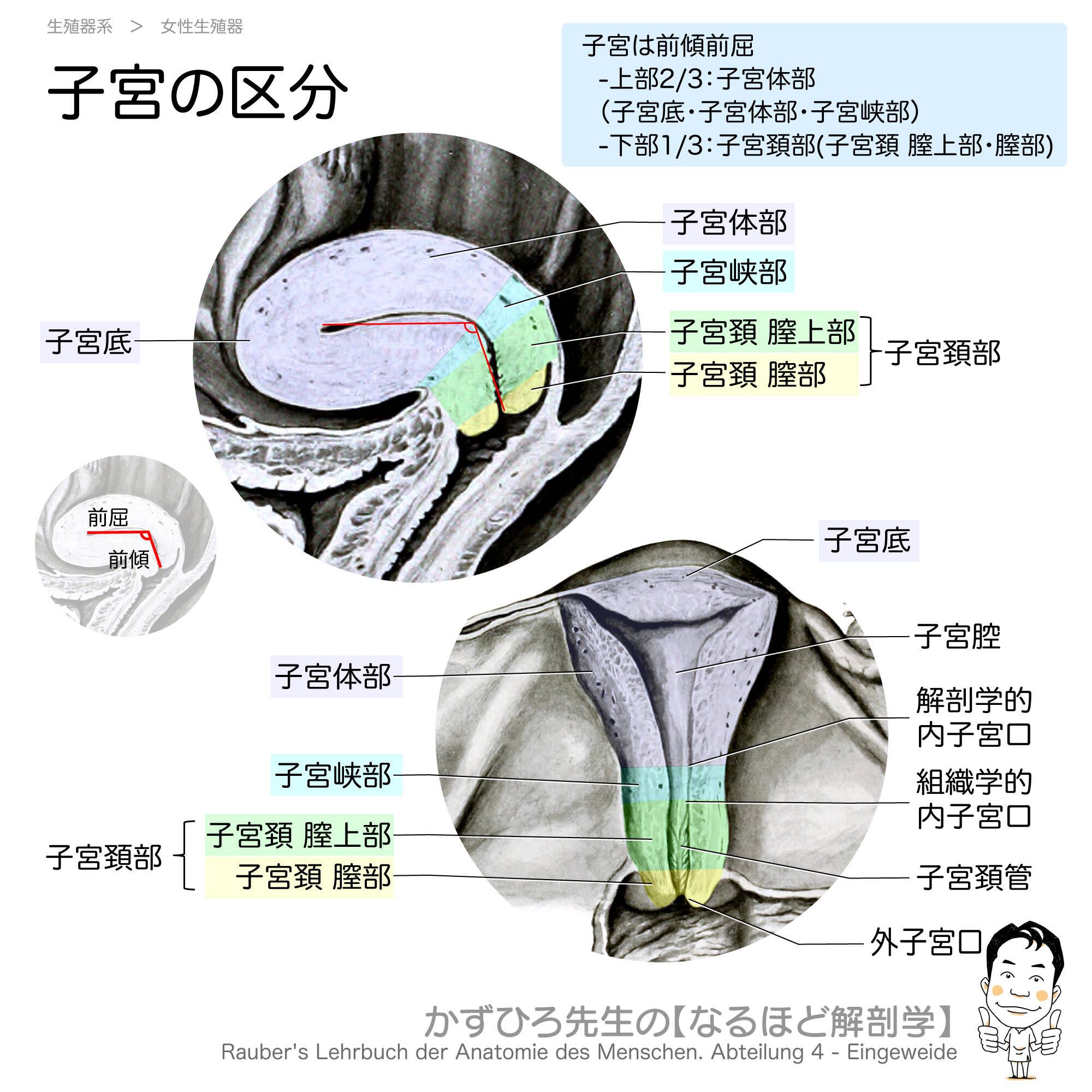 - 上部2/3: 子宮体部(子宮底・子宮体部・子宮峡部)