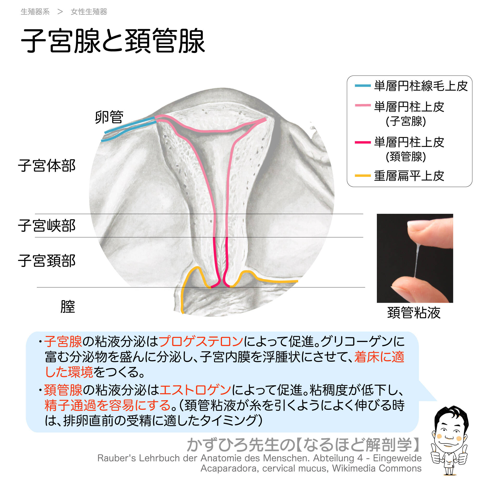 - 頚管腺: エストロゲンで分泌促進、精子通過を容易に