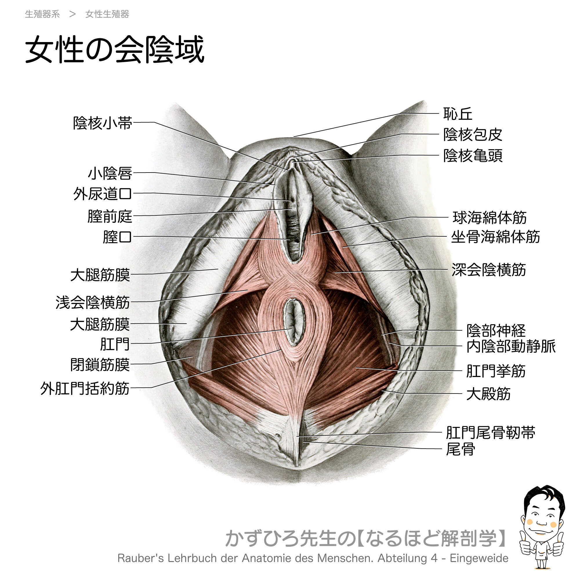 - 会陰: 膣口と肛門の間の領域