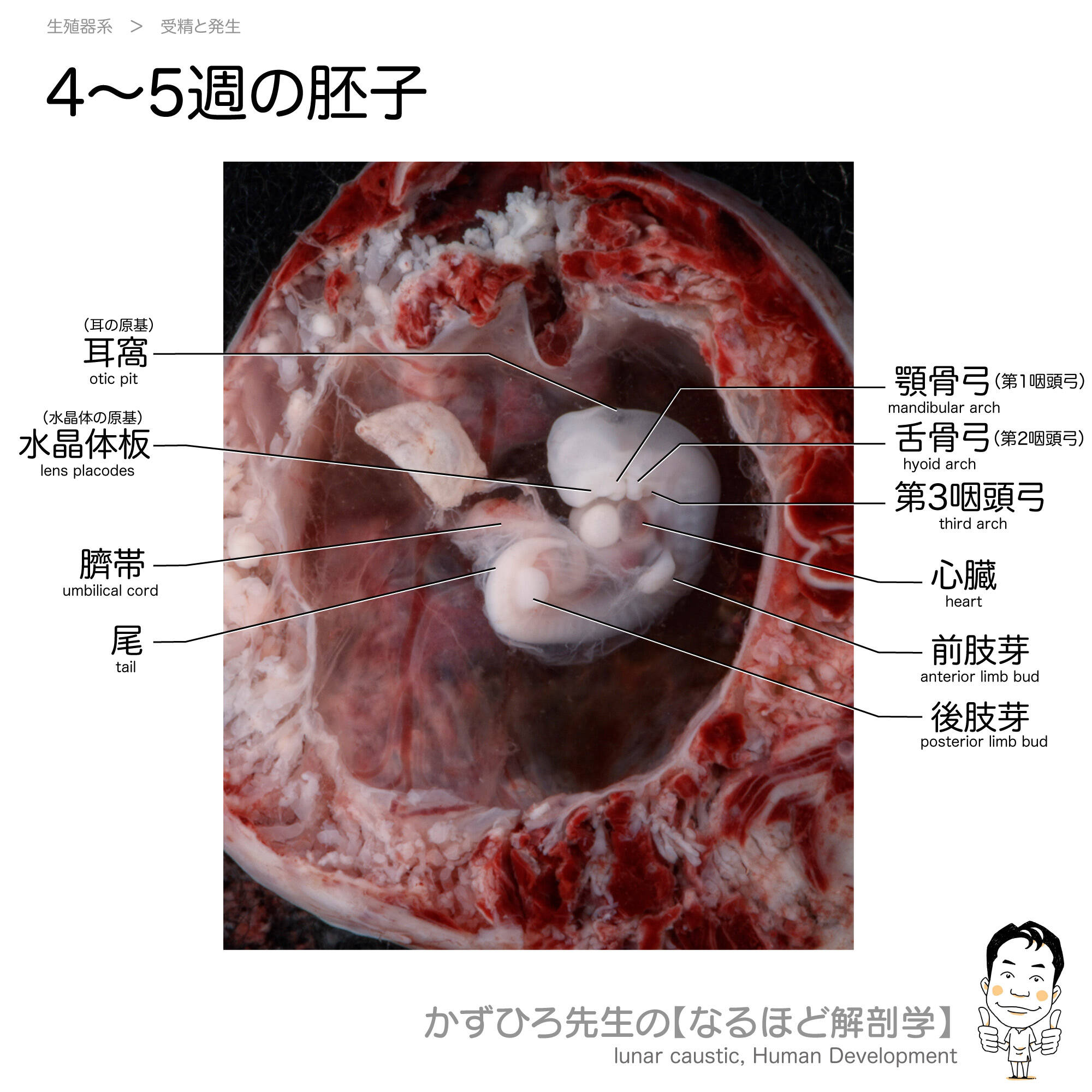 - [ ] 4〜5週の胚子の構造を列挙できる