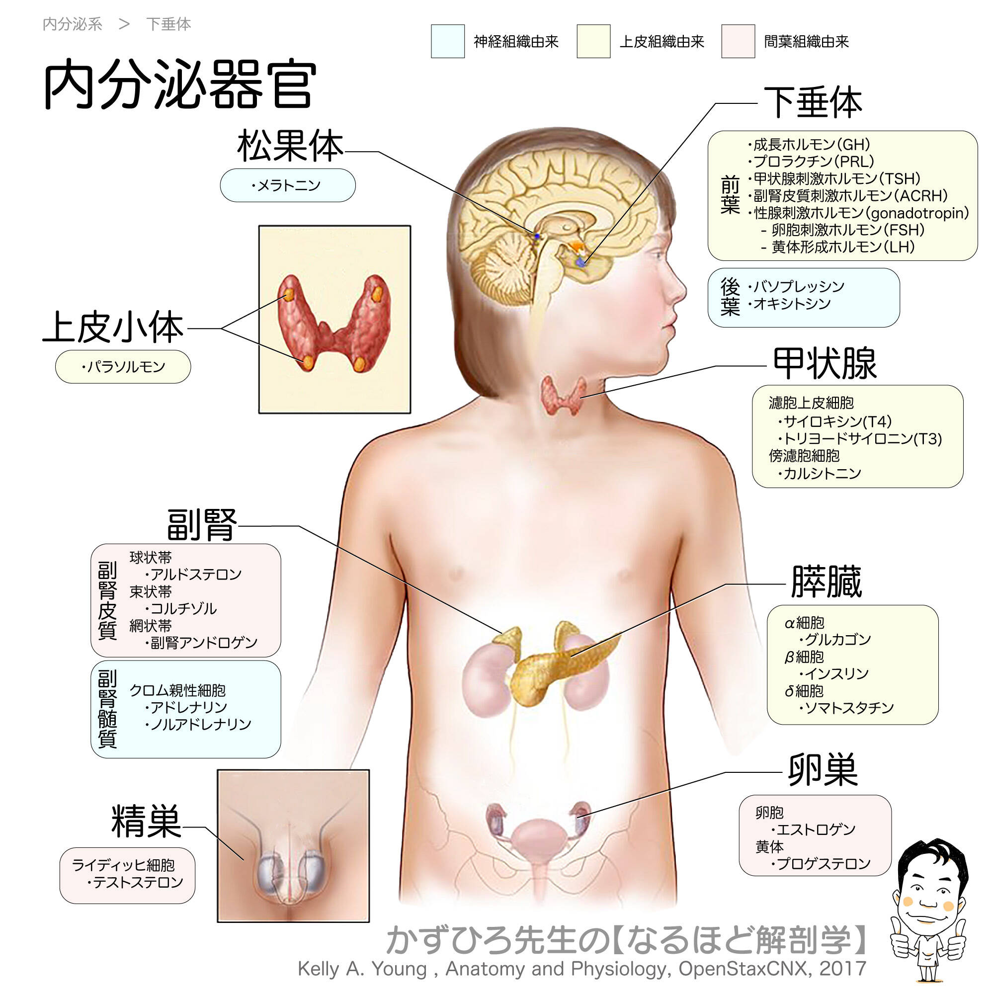 | 副腎髄質 | 神経組織 | アドレナリン、ノルアドレナリン |