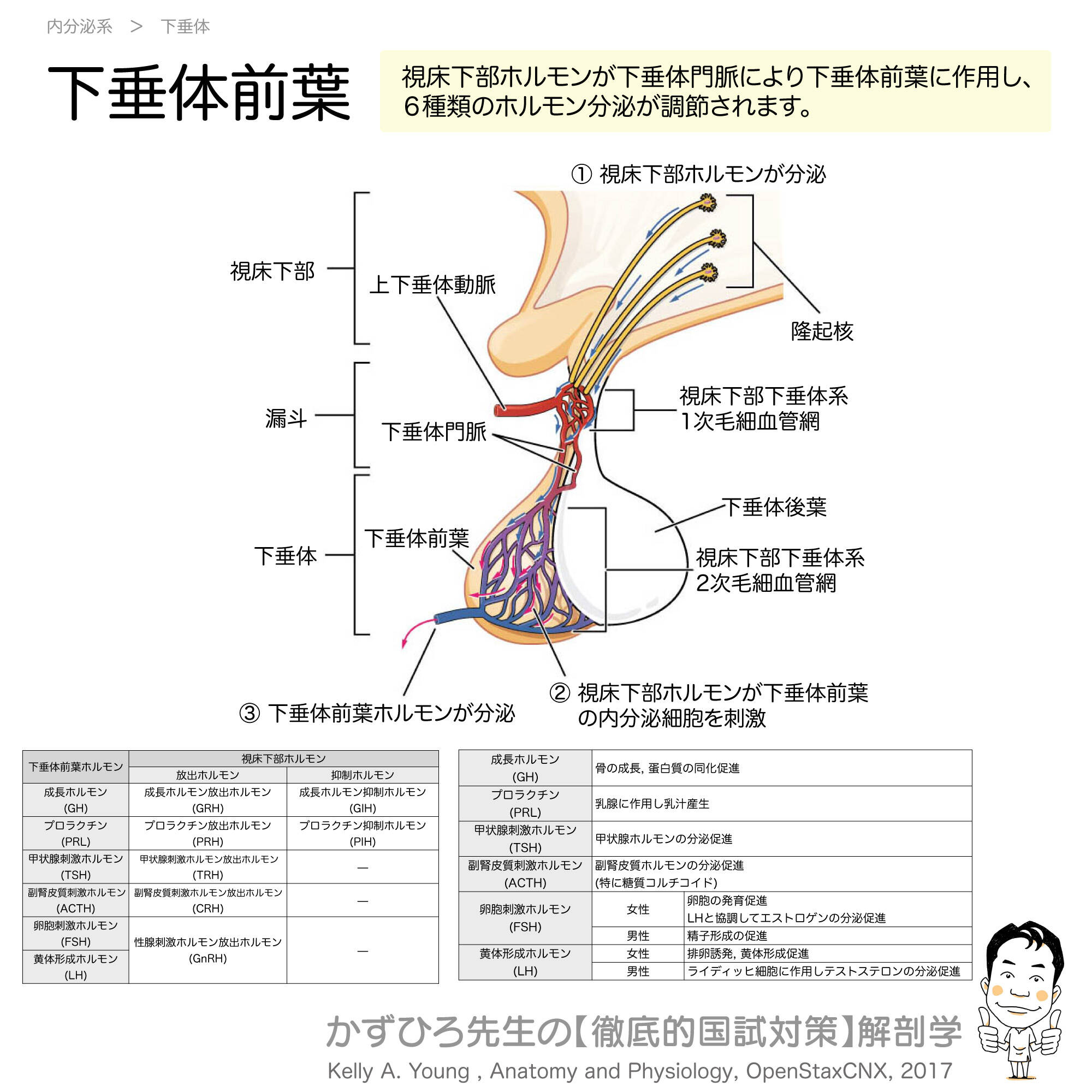 【解答と解説】 正解:下垂体門脈、下垂体前葉、6