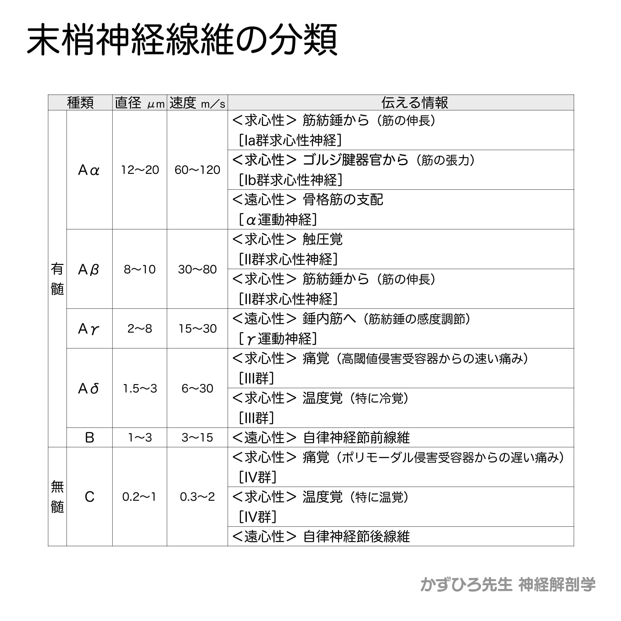 - 有髄線維 = A・B、無髄線維 = C