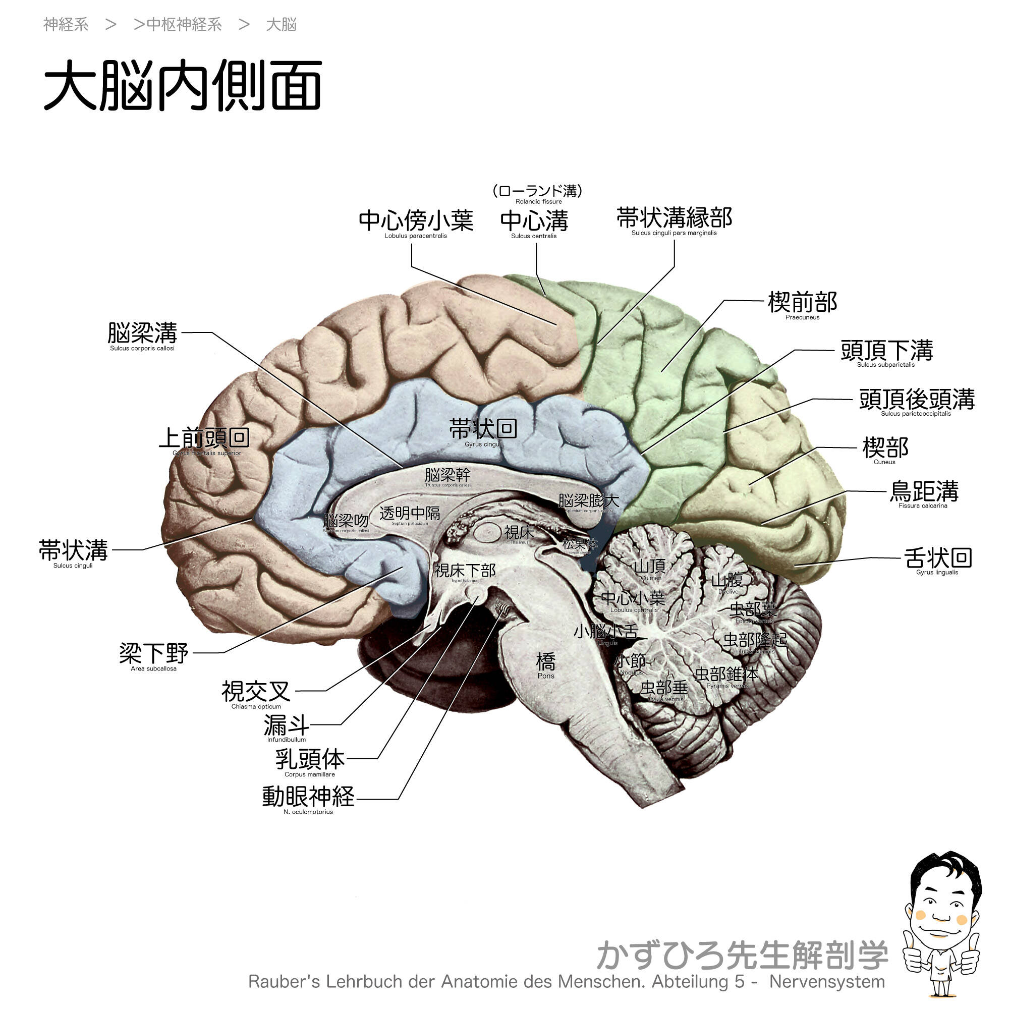 | 中心溝(ローランド溝) | 前頭葉と頭頂葉の境界(内側面にも延長) |