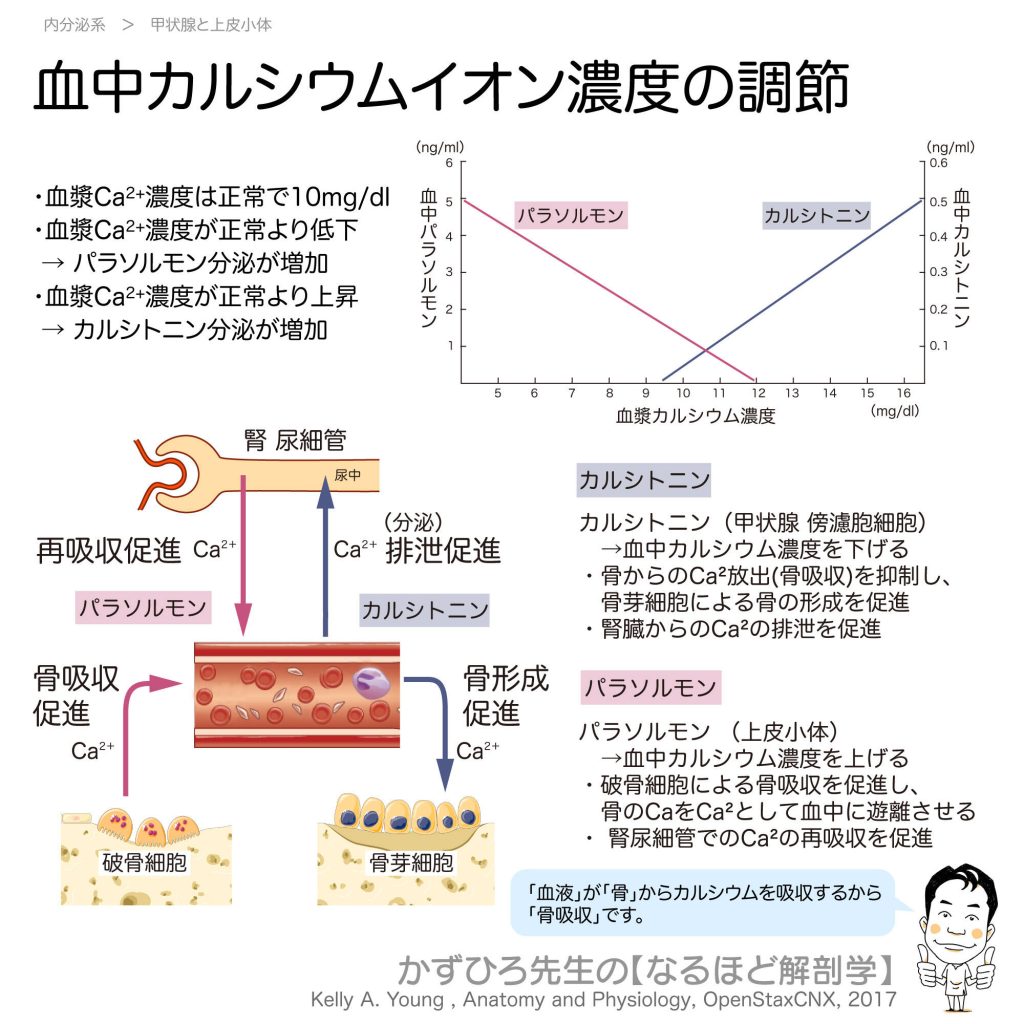 血中カルシウムイオン濃度の調節 - 完全攻略ガイド はじめに 血中カルシウムイオン濃度は、パラソルモンとカルシトニンという2つのホルモンによって厳密に調節されています。骨と腎臓への作用を理解することで、カルシウム代謝の全体像が見えてきます。国... -