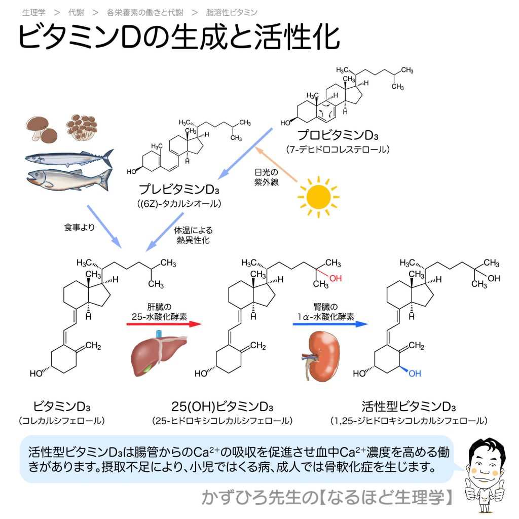 ビタミンDの生成と活性化 - 完全攻略ガイド はじめに ビタミンDはカルシウム代謝に不可欠なビタミンで、皮膚での合成から肝臓・腎臓での活性化まで、独特の代謝経路を持っています。活性型ビタミンD₃の産生過程と作用を理解しましょう。国家試験では超頻出... -