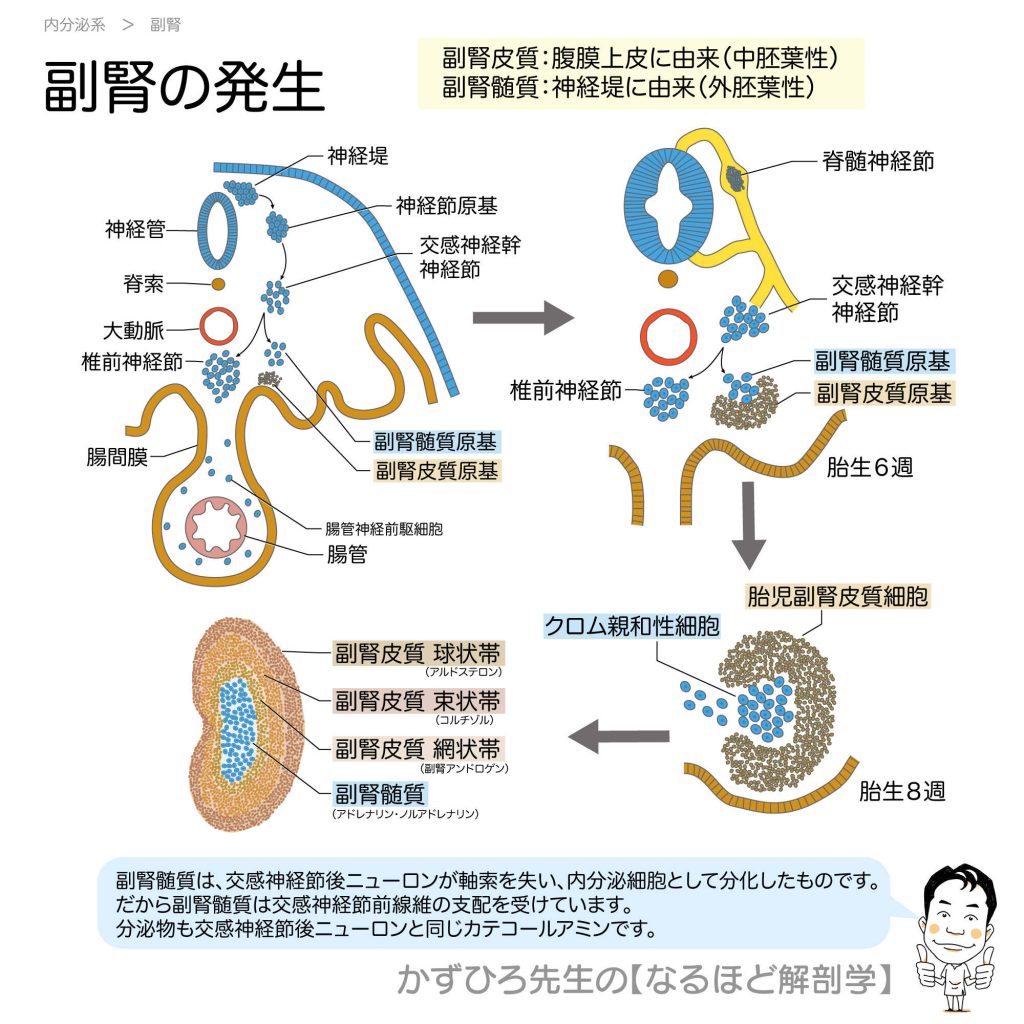 副腎の発生 - 完全攻略ガイド はじめに 副腎は皮質と髄質で発生由来が全く異なります。この違いを理解することで、なぜ皮質と髄質で分泌するホルモンや機能が異なるのかが理解できます。国家試験では超頻出のテーマです! 詳しい解説 副腎の発生由来 部位 ... -