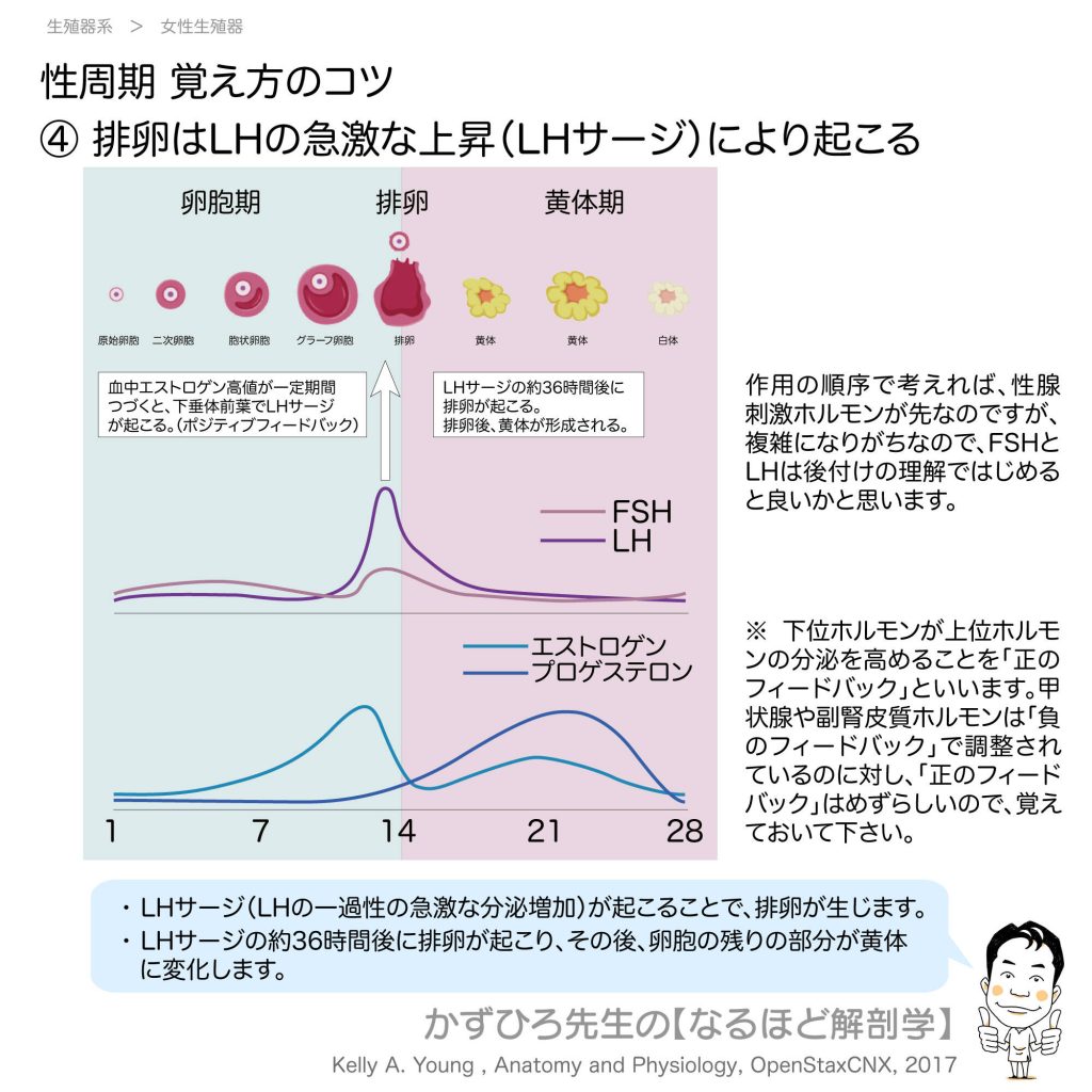 性周期覚え方のコツ(4) 排卵はLHの急激な上昇(LHサージ)により起こる - 完全攻略ガイド はじめに 排卵はLH(黄体形成ホルモン)の急激な上昇、いわゆるLHサージにより誘発されます。これは正のフィードバックと呼ばれる現象で、エストロゲン濃度が一定期... -