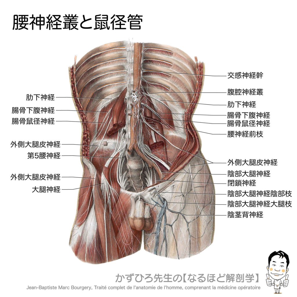 腰神経叢の枝と鼠径管 - 完全攻略ガイド はじめに 腰神経叢は第12胸神経〜第4腰神経から構成され、下腹部や下肢に分布する神経を分岐します。鼠径管周囲にも腰神経叢からの枝が分布しており、精巣挙筋の支配や陰嚢・大腿の皮膚感覚に関与しています。この... -