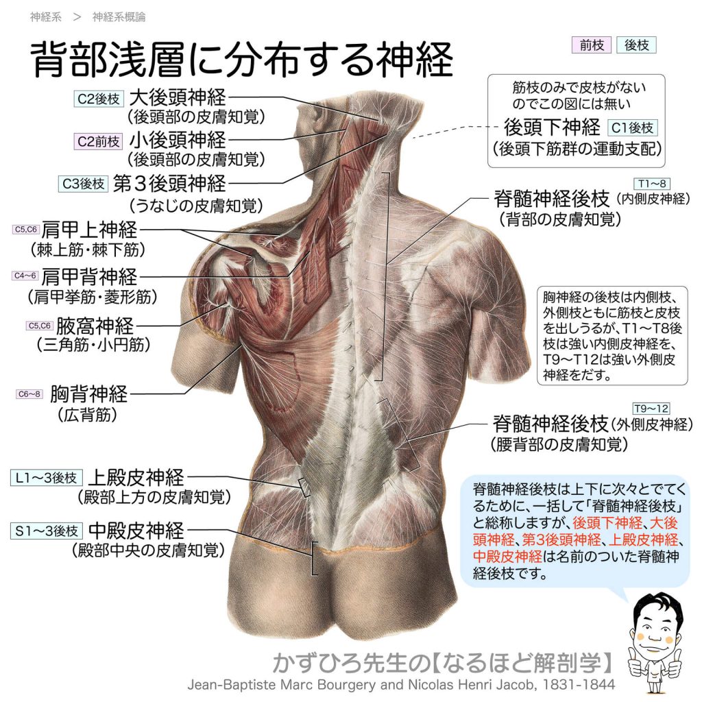 背部浅層に分布する神経