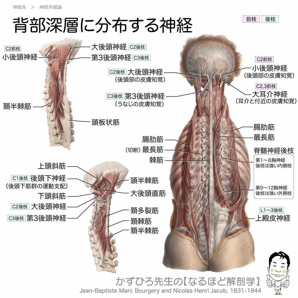 背部深層に分布する神経
