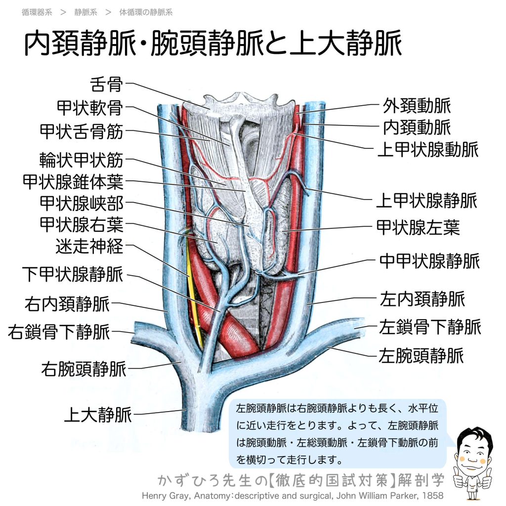 内頚静脈・腕頭静脈と上大静脈 - 完全攻略ガイド はじめに 上大静脈は頭頸部と上肢からの静脈血を集める大静脈です。内頚静脈と鎖骨下静脈が合流して腕頭静脈となり、左右の腕頭静脈が合流して上大静脈が形成されます。 詳しい解説 上大静脈の形成経路 内... -