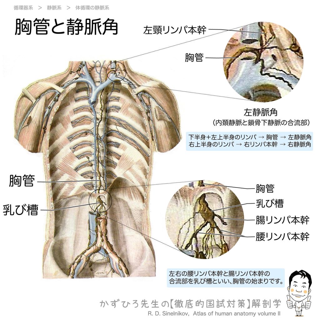 静脈角と胸管 - 完全攻略ガイド はじめに 胸管は体内最大のリンパ管で、下半身と左上半身のリンパを集めて左静脈角に注ぎます。静脈角はリンパ管が静脈系に合流する重要な部位です。今回は、胸管と静脈角について詳しく解説します。 詳しい解説 静脈角の定... -