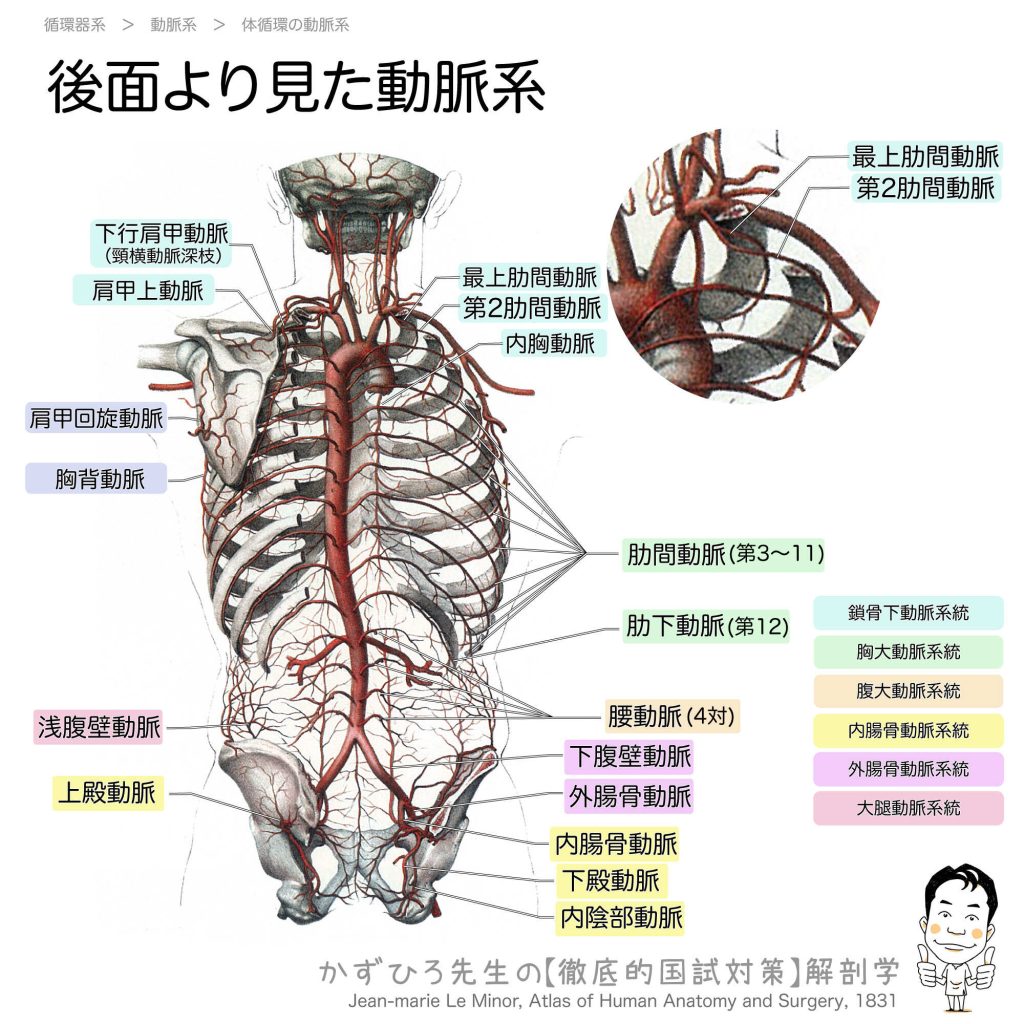 体幹後面の動脈 - 完全攻略ガイド はじめに 体幹の後面には、複数の動脈系統が血液を供給しています。肋間動脈、腰動脈、殿部の動脈など、それぞれの起始動脈を正確に理解することが重要です。今回は、体幹後面の動脈系統について、後面から見た視点で解説... -