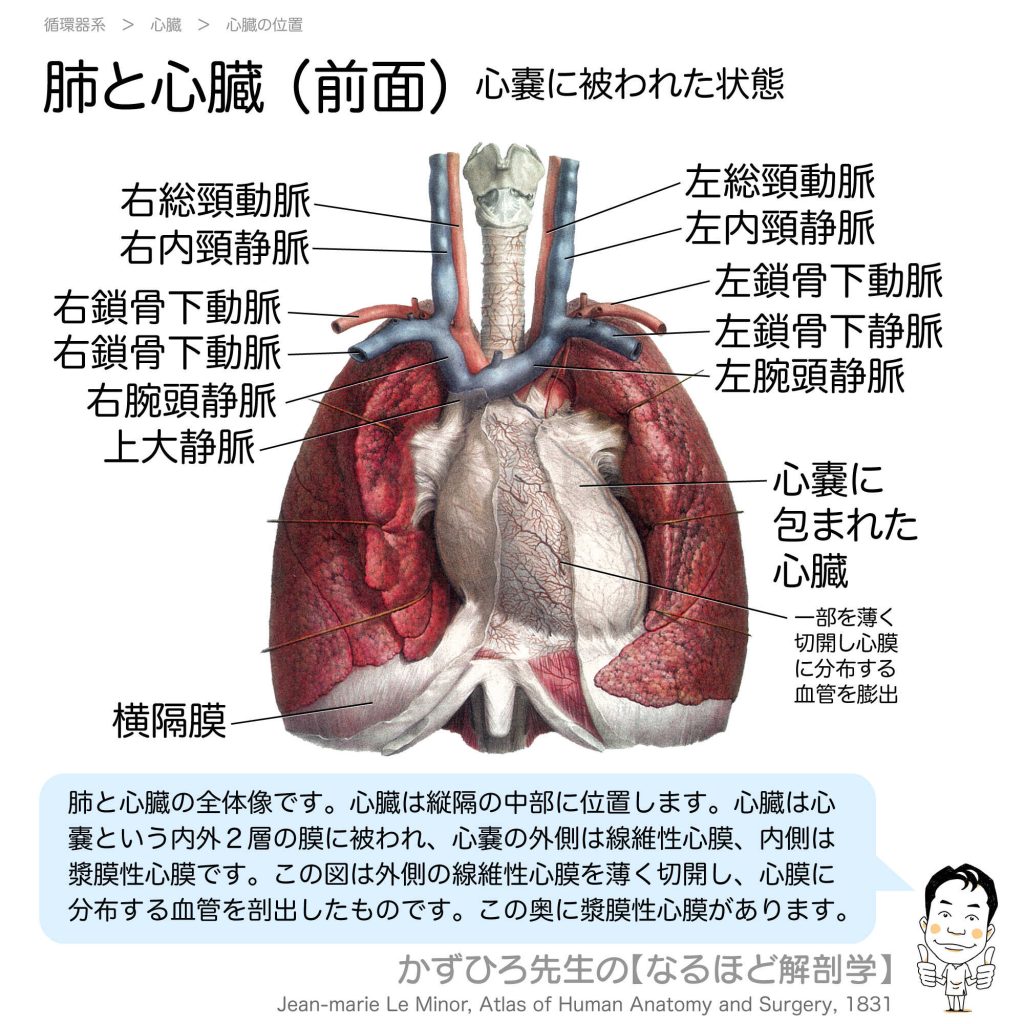 肺と心臓(前面) - 完全攻略ガイド はじめに 心臓は縦隔の中部に位置し、心嚢という二重の膜に包まれています。心臓の前面からは、大血管の配置や心嚢の構造を観察できます。この記事では、心臓前面の解剖と周囲の血管を詳しく解説します。 詳しい解説 心... -