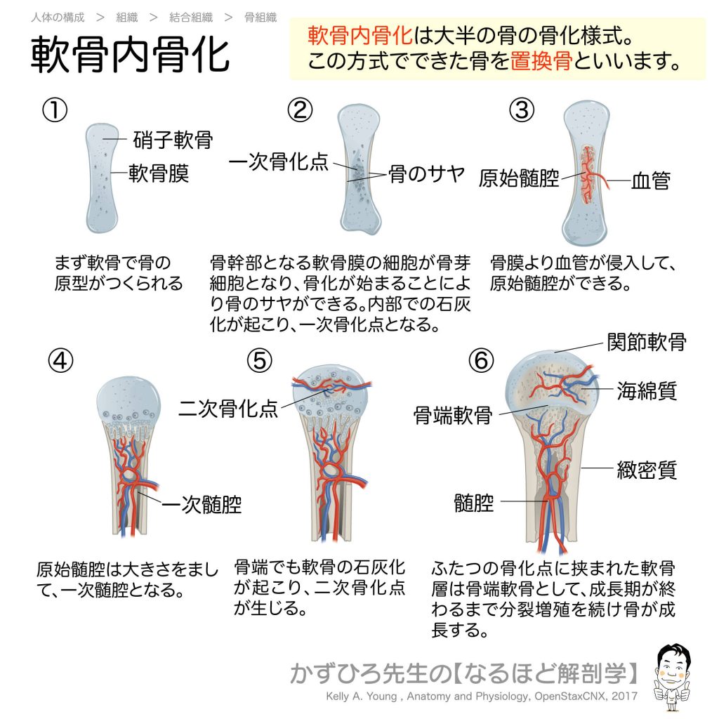 軟骨内骨化 - 完全攻略ガイド はじめに 軟骨内骨化は大半の骨の骨化様式で、軟骨が骨に置き換わる過程です。この方式でできた骨を置換骨といいます。今回は軟骨内骨化について詳しく解説します。 詳しい解説 軟骨内骨化とは 大半の骨の骨化様式 軟骨が骨に... -