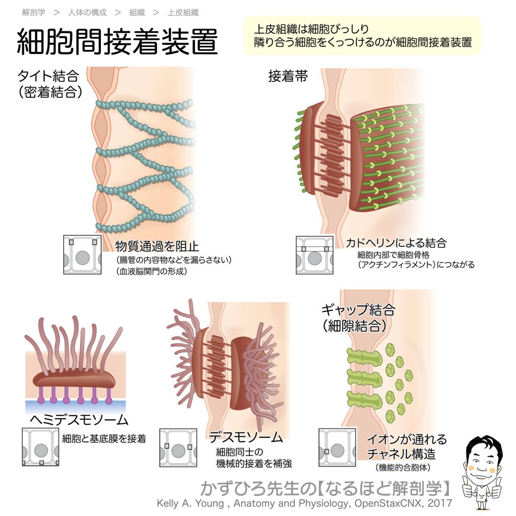 接着帯 - 完全攻略ガイド はじめに 接着帯は細胞間接着装置の一つで、カドヘリンという接着分子によって細胞同士を結合します。タイト結合のすぐ下に位置し、細胞を帯状に取り囲んでいます。今回は接着帯の構造と機能について詳しく解説します。 詳しい解... -