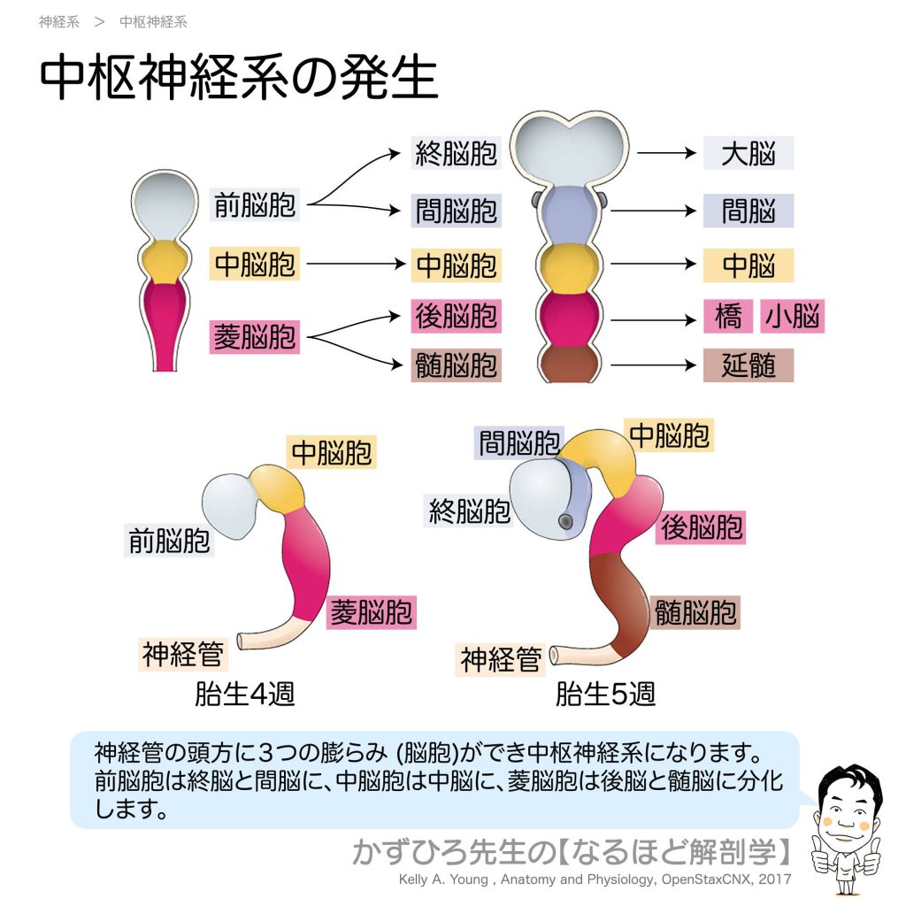 中枢神経系の発生 - 完全攻略ガイド はじめに 中枢神経系の発生は、国家試験で超頻出のテーマです。神経管から脳と脊髄がどのように発生するのか、その過程を理解することは解剖学の基礎となります。この記事では、脳胞の分化と発生時期について、図解を交... -