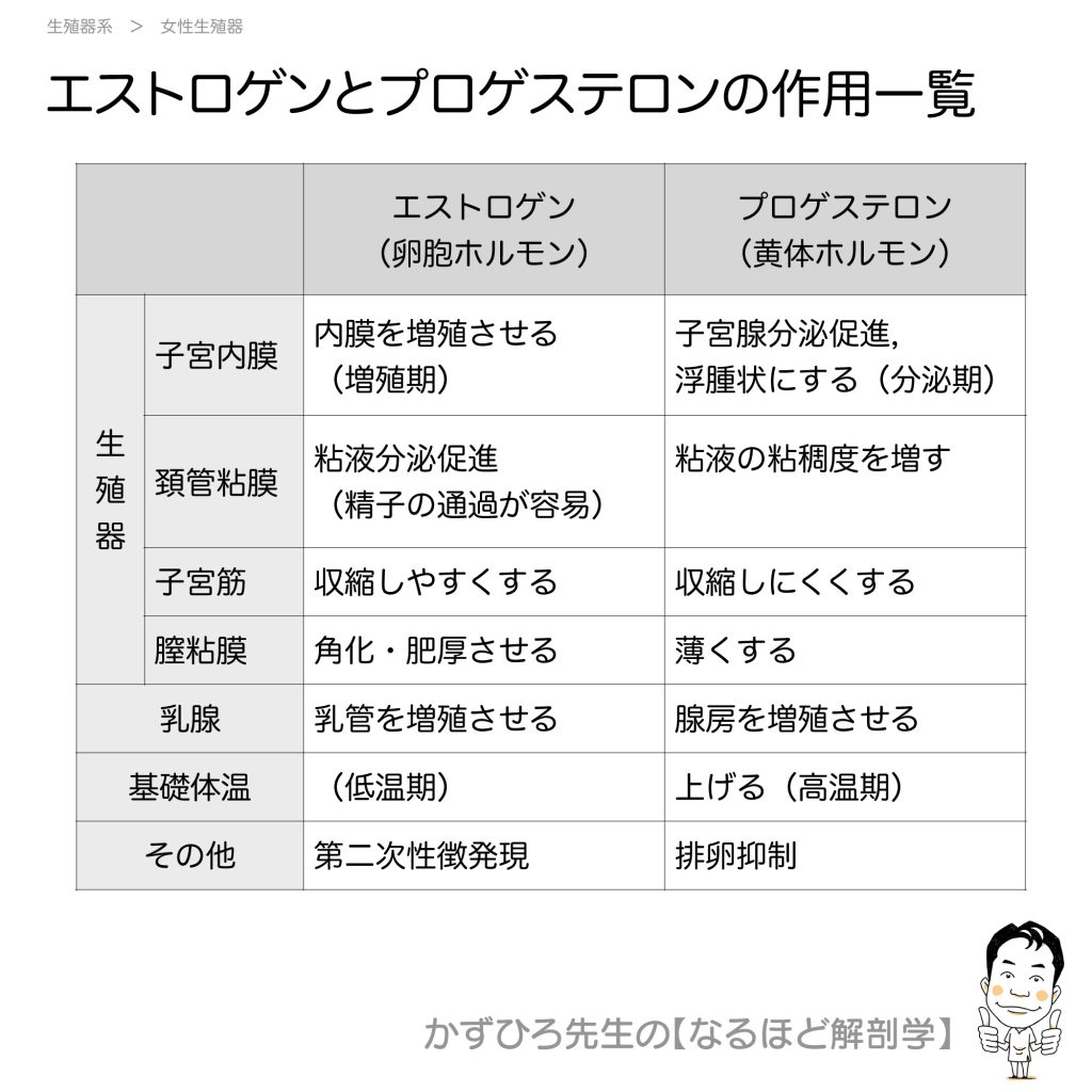 エストロゲンとプロゲステロンの作用一覧
