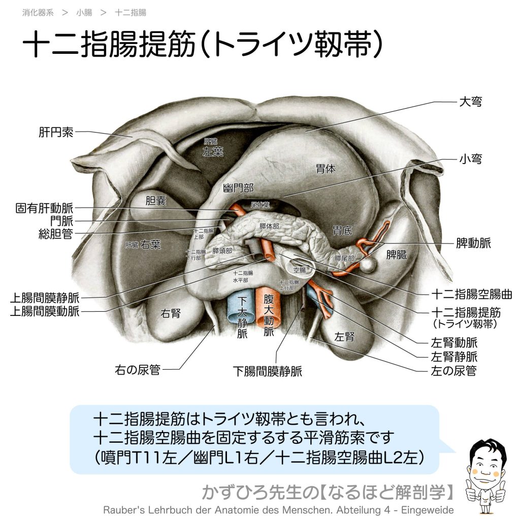 十二指腸提筋(トライツ靱帯) - 完全攻略ガイド はじめに 十二指腸提筋(トライツ靱帯)は十二指腸空腸曲を固定する平滑筋索で、臨床的には上部消化管出血と下部消化管出血の境界として重要です。その位置と臨床的意義を理解しましょう。 詳しい解説 十二... -