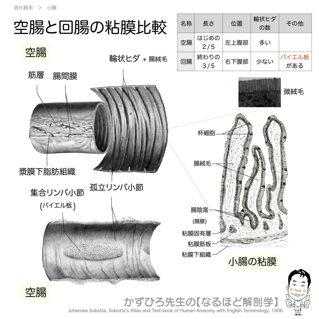 空腸と回腸の粘膜比較