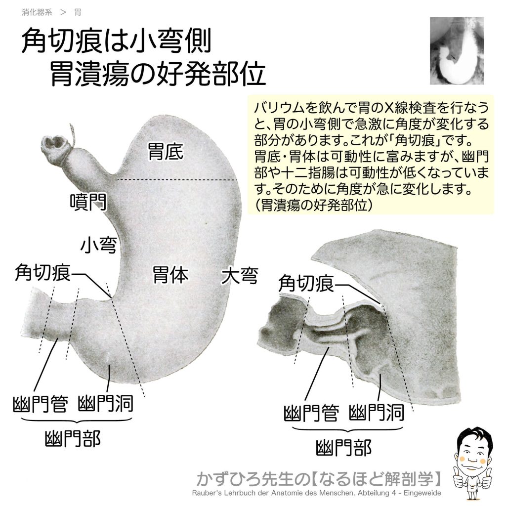 角切痕は小弯側 – 胃潰瘍の好発部位