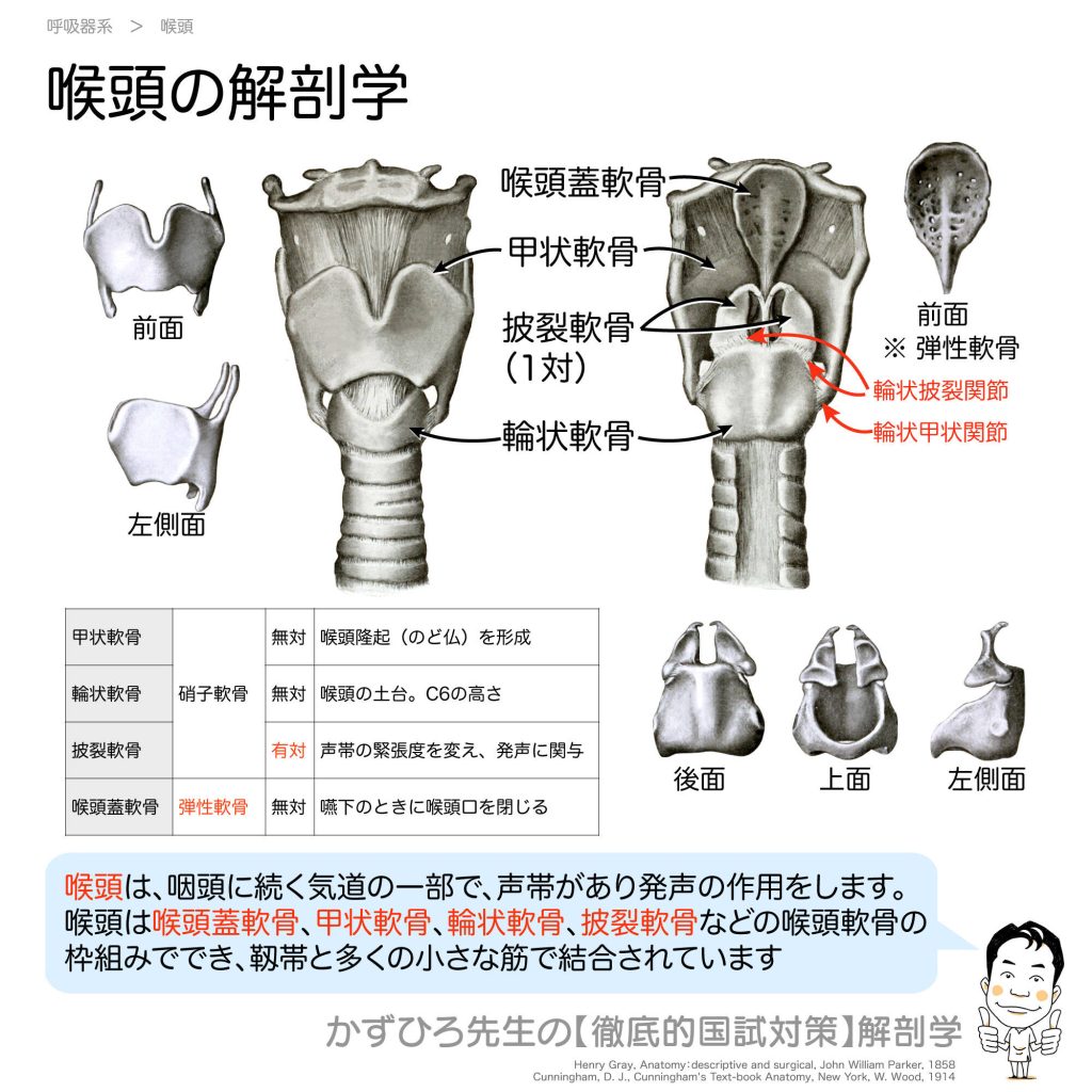 輪状軟骨と披裂軟骨、喉頭蓋軟骨のポイント