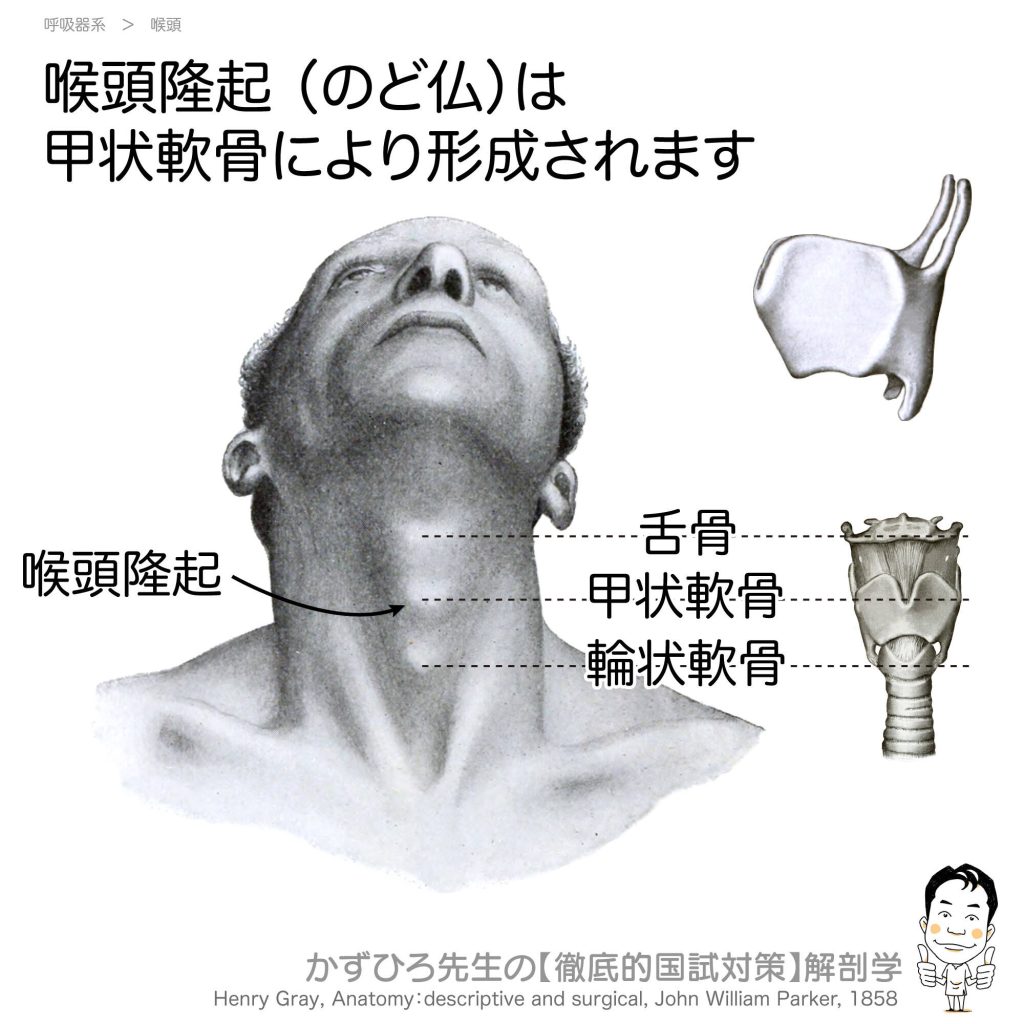 喉頭隆起(のど仏)は甲状軟骨により形成されます