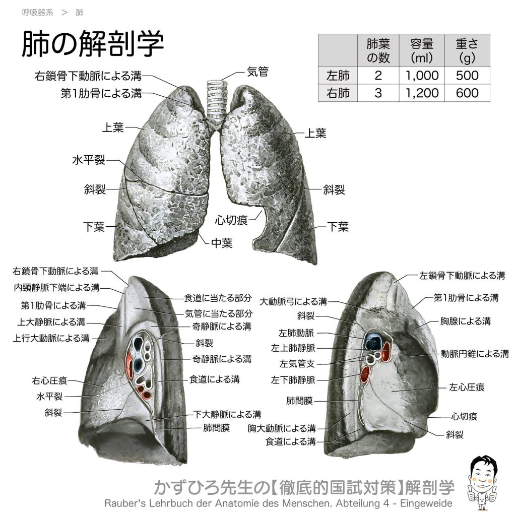 肺のポイント - 完全攻略ガイド はじめに 肺葉と肺裂の覚え方、心圧痕と心切痕の違い、肺尖の位置など、肺に関する重要ポイントをまとめて解説します。これらは国試でも頻出のテーマです。この記事では、肺の重要ポイントを整理して詳しく解説します。 詳... -