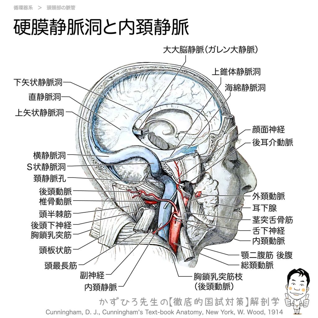 硬膜静脈洞と内頚静脈 - 完全攻略ガイド はじめに 硬膜静脈洞は硬膜の二葉間に存在する特殊な静脈で、脳の静脈血を集めて最終的に内頚静脈へ還流します。上矢状静脈洞と直静脈洞は静脈洞交会で合流し、横静脈洞、S状静脈洞を経て頚静脈孔から内頚静脈とな... -