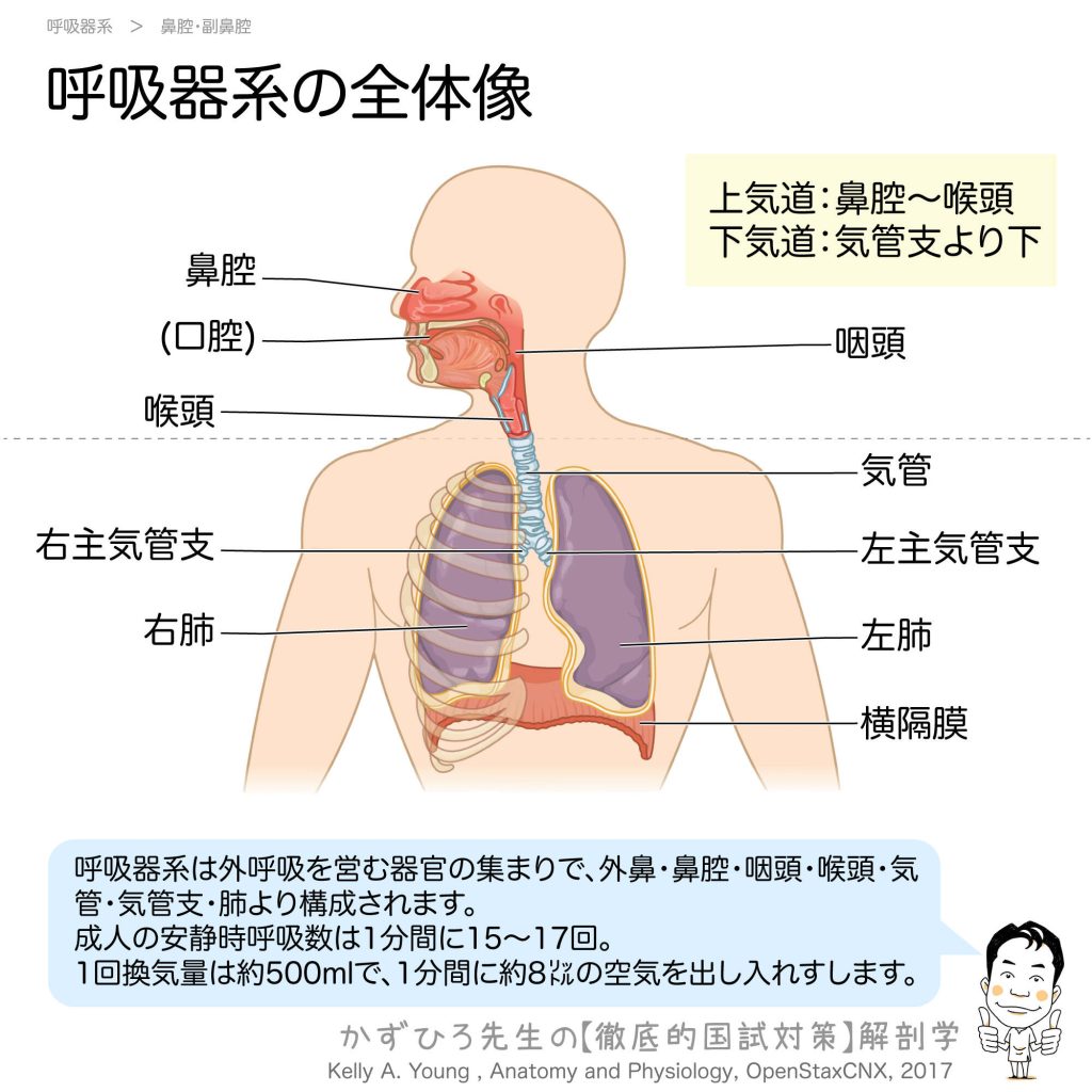 呼吸器系の全体像 - 完全攻略ガイド はじめに 呼吸器系は私たちが生きていく上で欠かせない「外呼吸」を担う器官系です。鼻から肺まで、空気の通り道である気道と、ガス交換を行う肺で構成されています。国家試験では呼吸器系の構成要素や上気道・下気道の... -