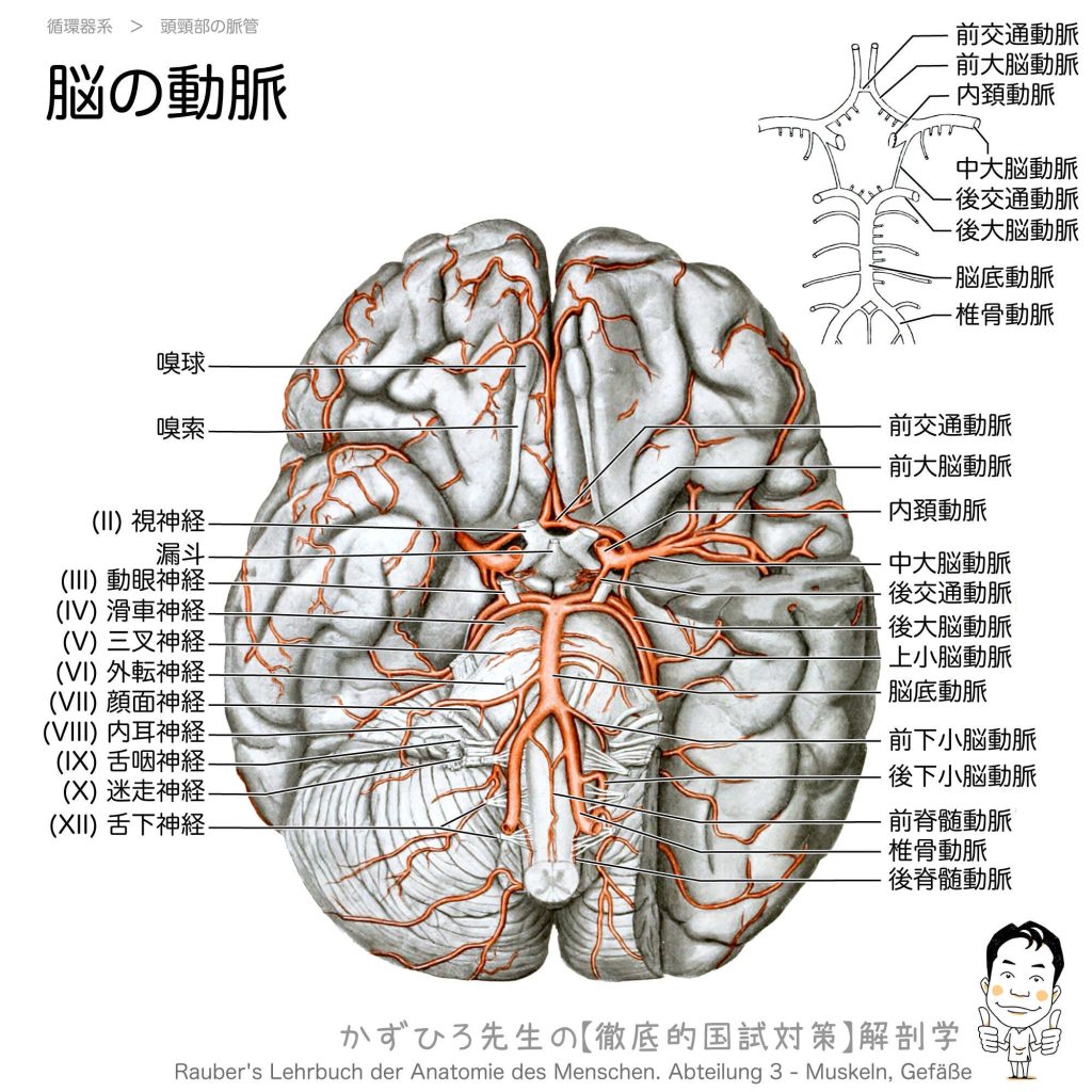 脳の動脈 - 完全攻略ガイド はじめに 脳底部の動脈は、内頚動脈系と椎骨脳底動脈系の2つの系統から構成されます。大脳動脈輪(ウイリス動脈輪)はこれらを連絡する重要な吻合で、一側の血流が障害されても他側から補償できる構造になっています。脳底部の... -