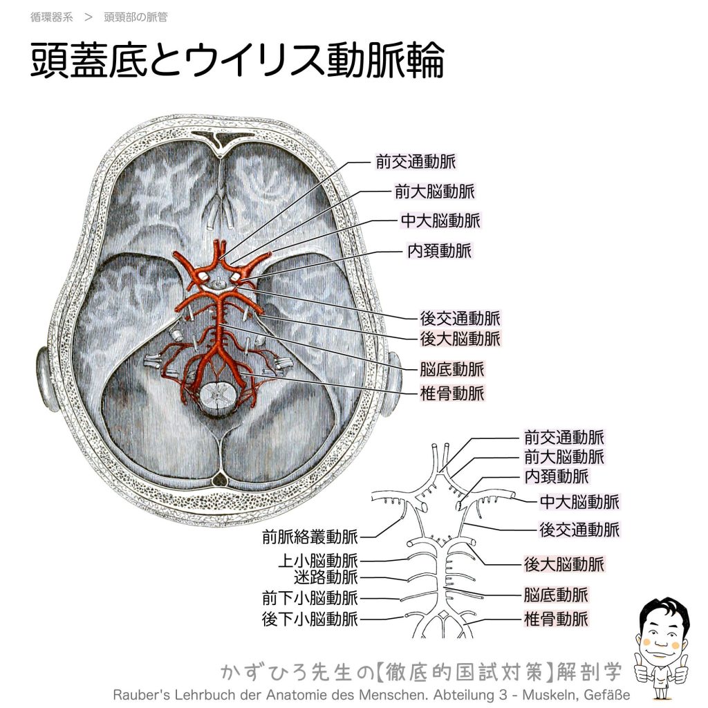 頭蓋底とウイリス動脈輪 - 完全攻略ガイド はじめに 大脳動脈輪(ウイリス動脈輪)は脳底部で内頚動脈系と椎骨脳底動脈系を連絡する重要な吻合構造です。六角形を呈し、一側の血流が障害されても他側から血流を補償できる側副血行路として機能します。脳血... -