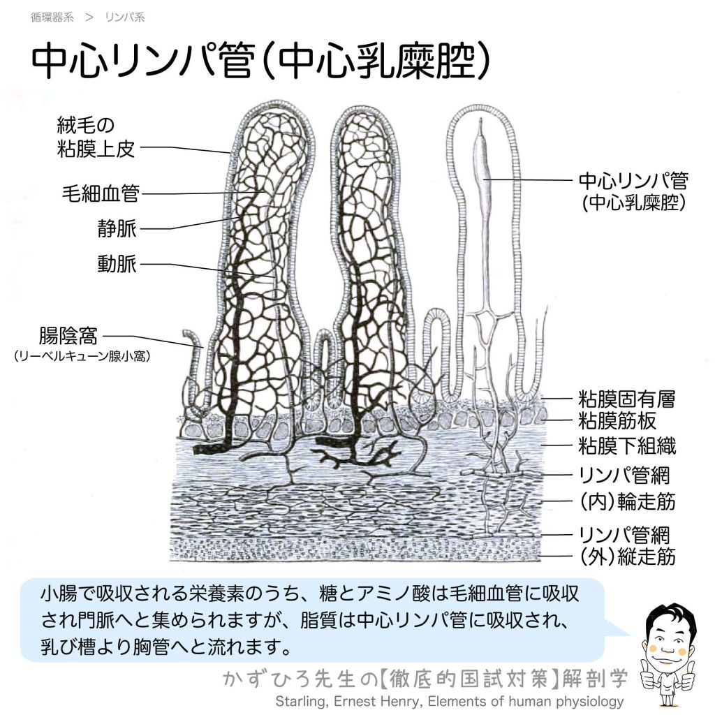 中心リンパ管(中心乳糜腔)- 完全攻略ガイド はじめに 中心リンパ管(中心乳糜腔)は小腸絨毛の中心を走るリンパ管で、脂質を吸収します。糖とアミノ酸は毛細血管から門脈へ、脂質は中心リンパ管から乳び槽・胸管へと異なる経路をたどります。国家試験で... -