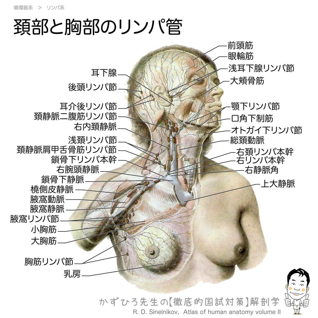 頸部と胸部のリンパ管 - 完全攻略ガイド はじめに 頸部と胸部には多数のリンパ節があり、リンパ本幹を経て静脈角に注ぎます。特に乳房のリンパは腋窩リンパ節に集まるため、乳癌転移で重要です。国家試験でも頻出のテーマです。 詳しい解説 頭頸部の主なリ... -